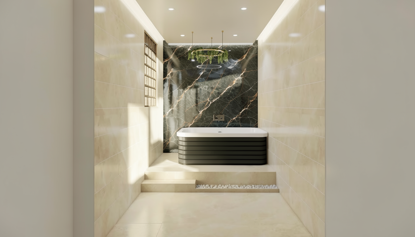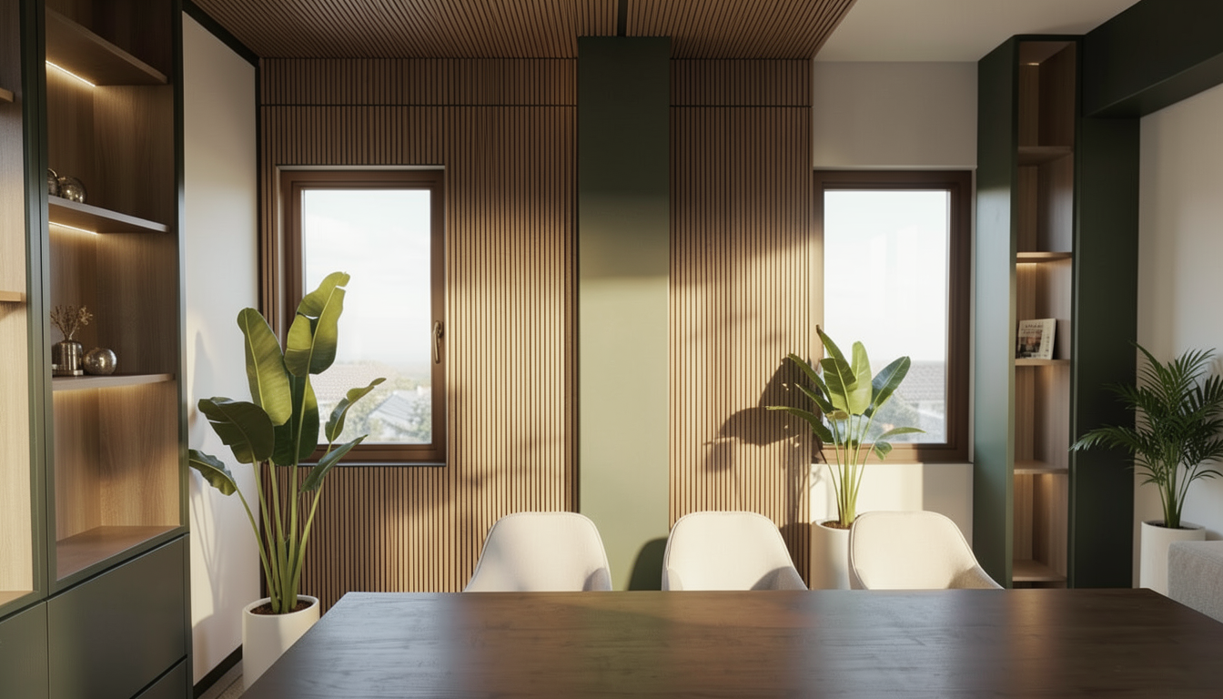top down 3d floor plan perspective featuring a split level entrance at the bottom and a living room on the left the center showcases a kitchen with a dedicated coffee bar station at the top a sunroom opens onto the backyard warm scandinavian interior design cozy atmosphere perfect for hosting guests