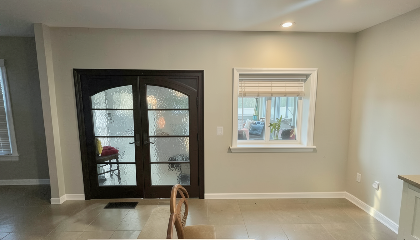 remove teh chair in the foreground and the cabinet and countertop in the bottom right corner