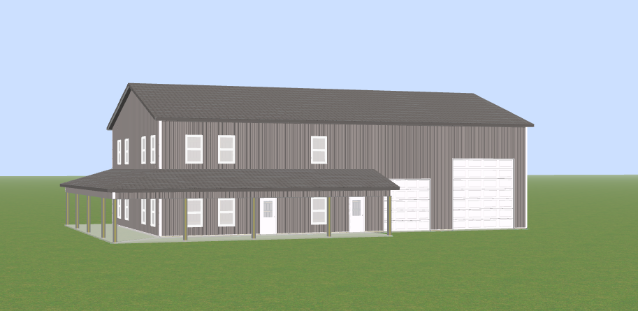 make the siding and roofing metal make the steel put in a sunny rural landscape with concrete drivway