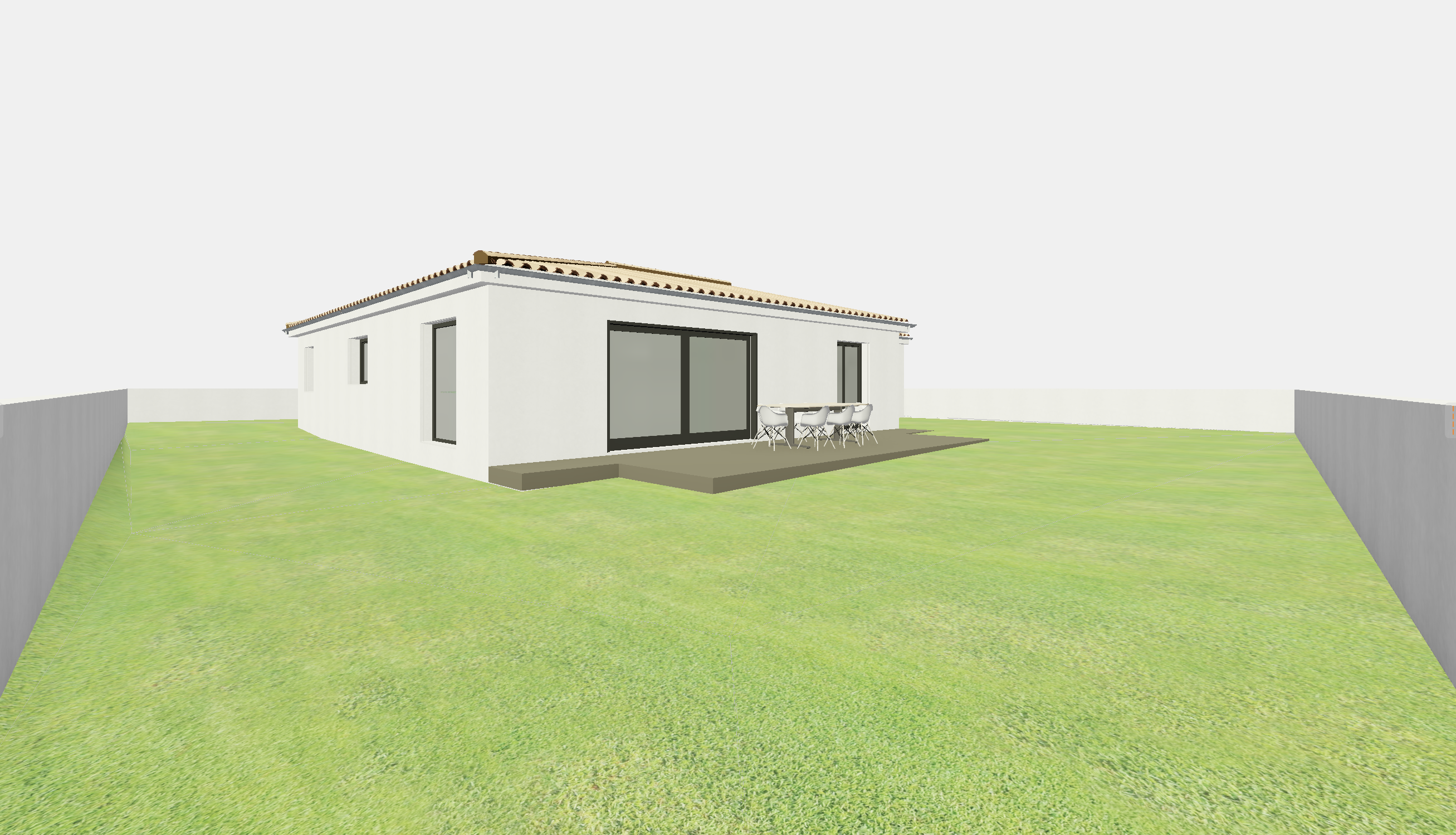add 2 olive trees on each side of the terrasse and some pine trees in the background