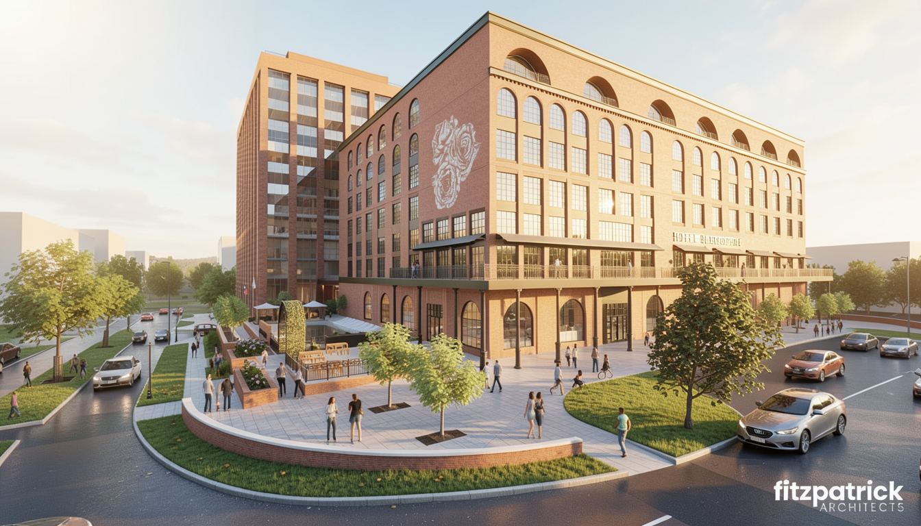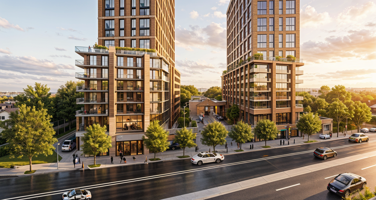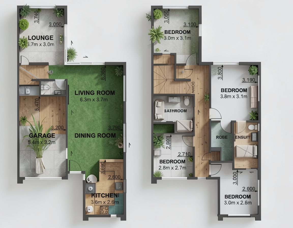 make this sketch a realistic photo with a driveway and a few trees in landscaping