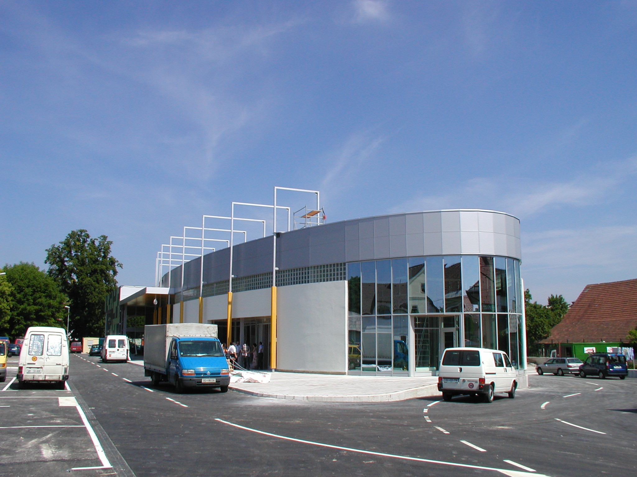 exterior shot summer vibe sunny with clouds remove cars architecture