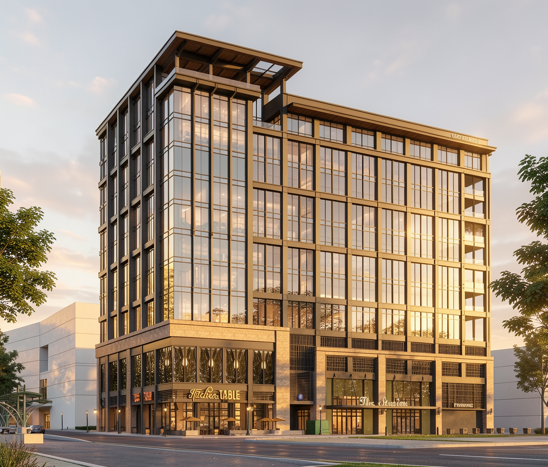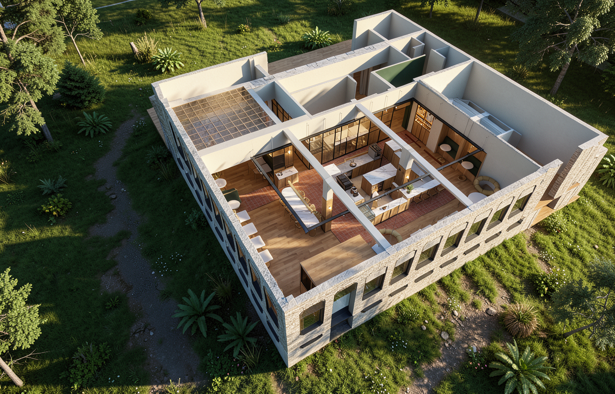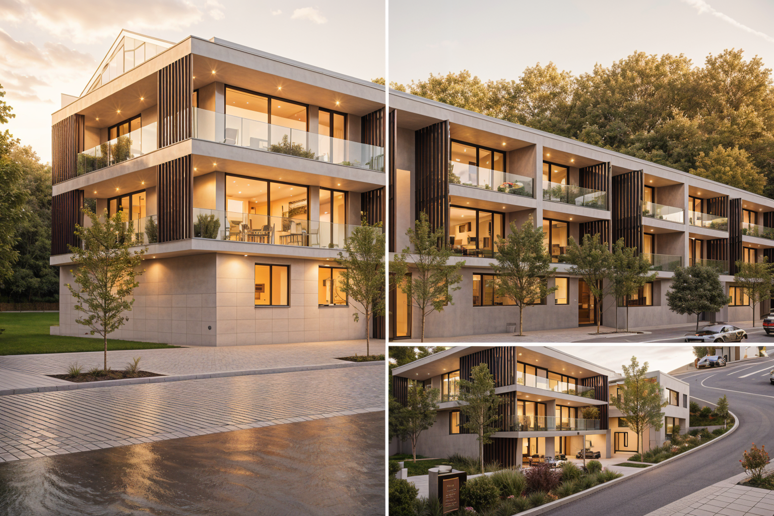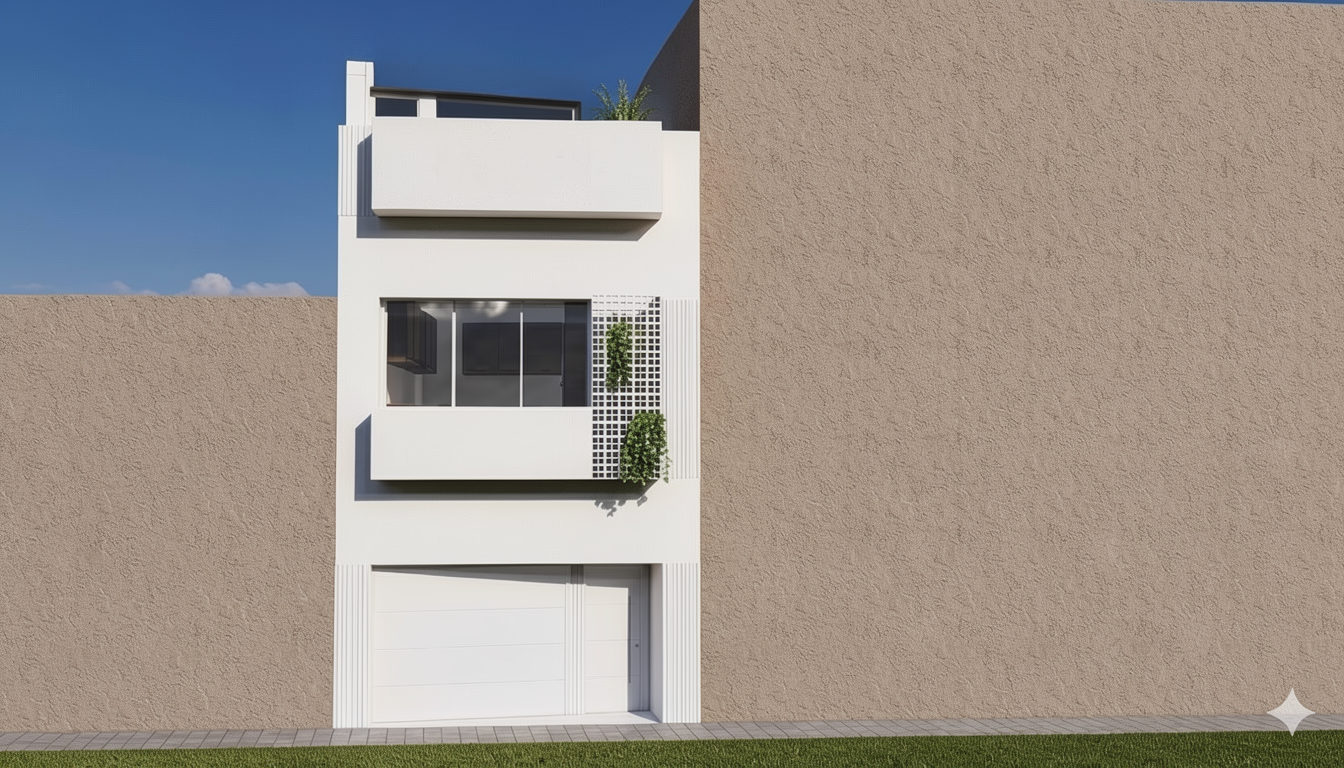 erstelle eine fotorealistische visualisierung der skizze an der stra e hinter den h usern soll eine drei meter hohe hecke stehen