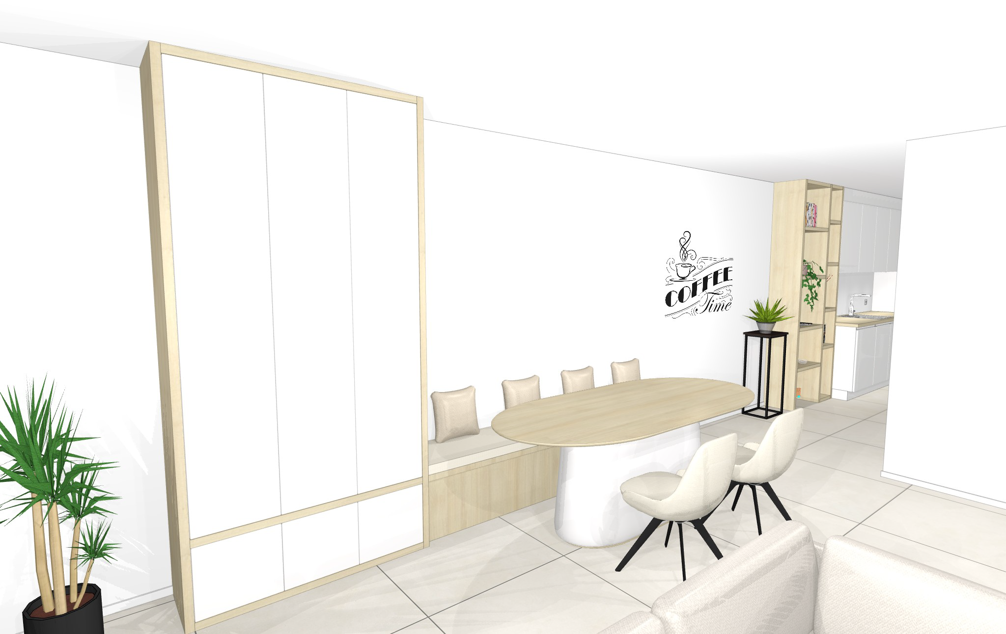 kast onder tv is in witte kleur tevens ook hoge kast aan de rechtse kant