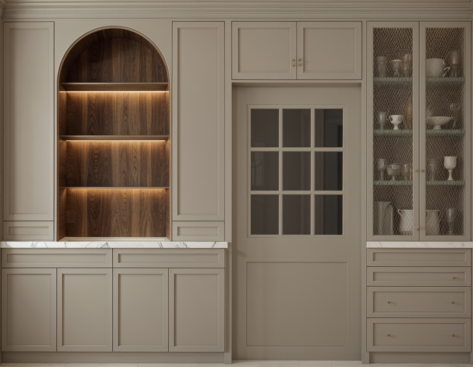 make cabinets lighter color add glassware to the shelves