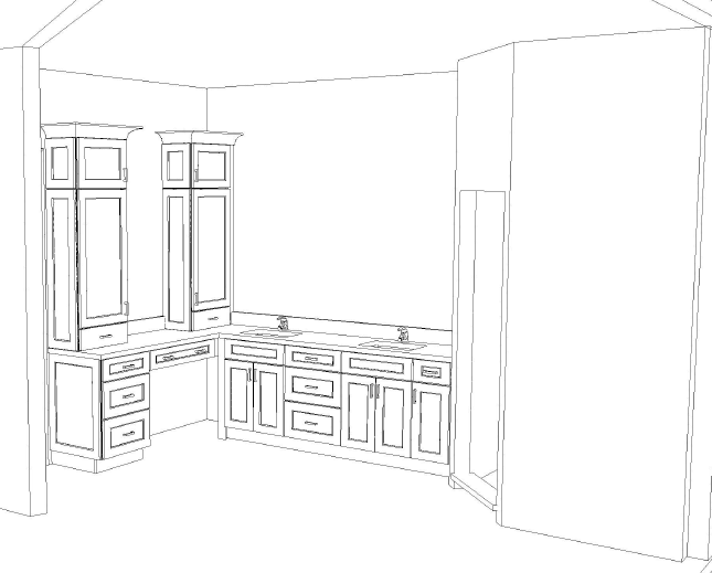make the cabinets a taupe wood stain with a marble mosaic floor gold hardware on the cabinets with a gold mirror and sconce lights add paneling on the walls