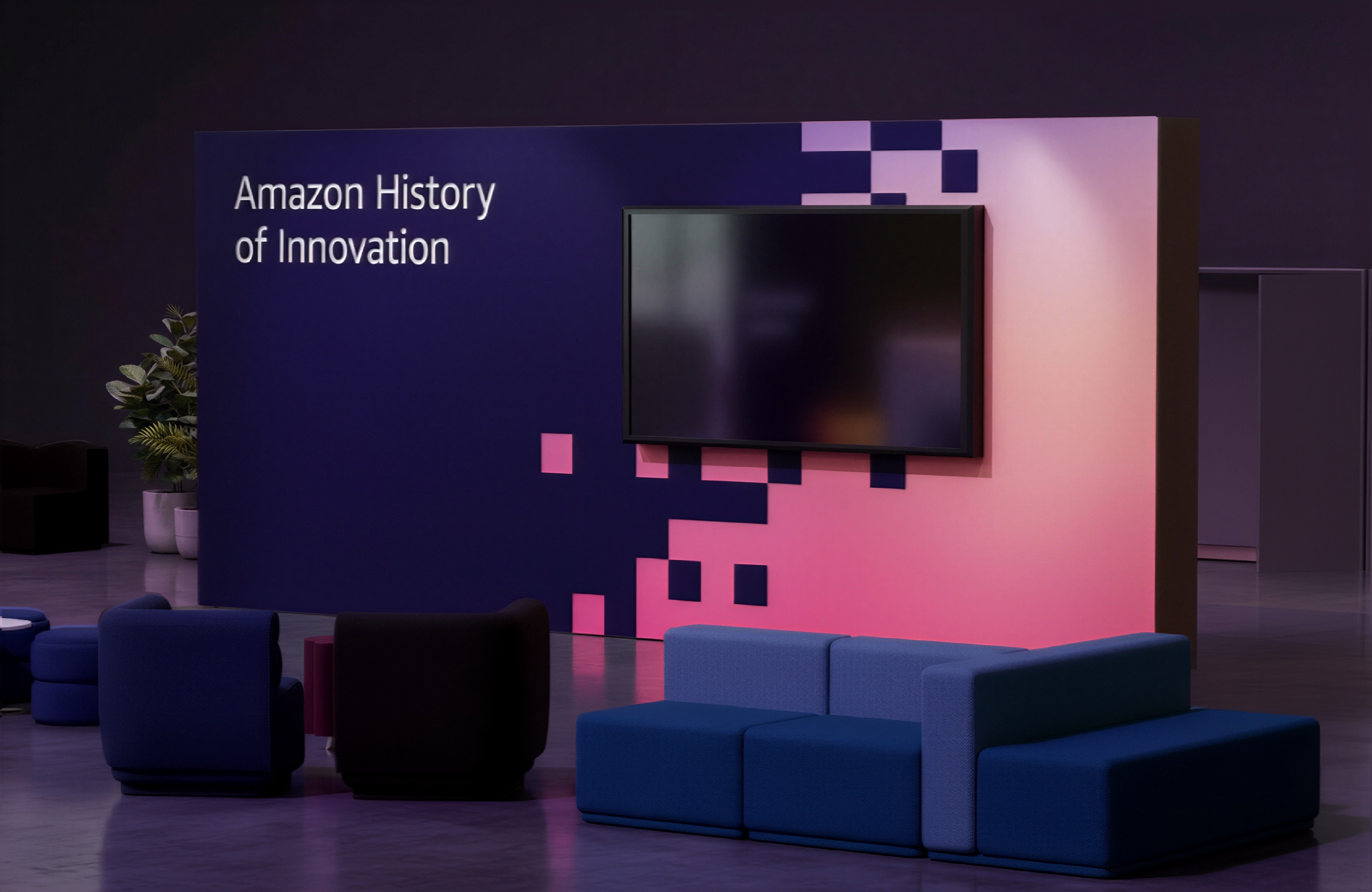 add blur to business people with lanyards sitting on the furnitures watching the tv blur people walking behind the wall do not change the current atmosphere or lighting