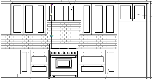 make the cabinets an antique white and the countertop black the hood above the range should be copper and the tile backsplash should be in a soft taupe