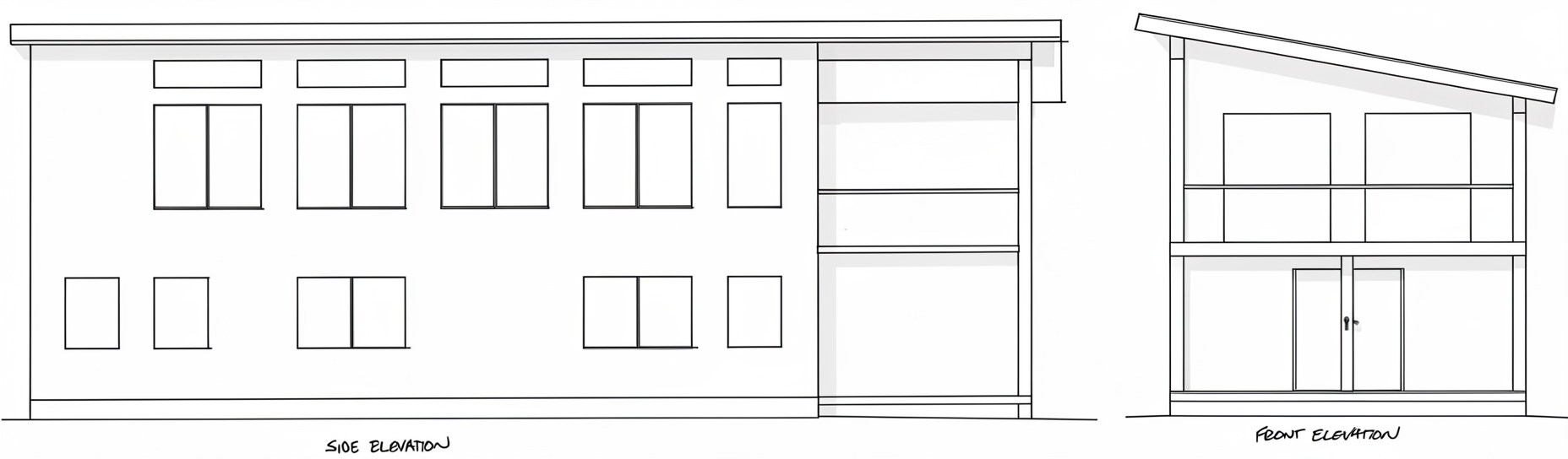 looks good but remove the wood wall at the back of the covered porch on both levels on the left drawing whuich is the side elevation