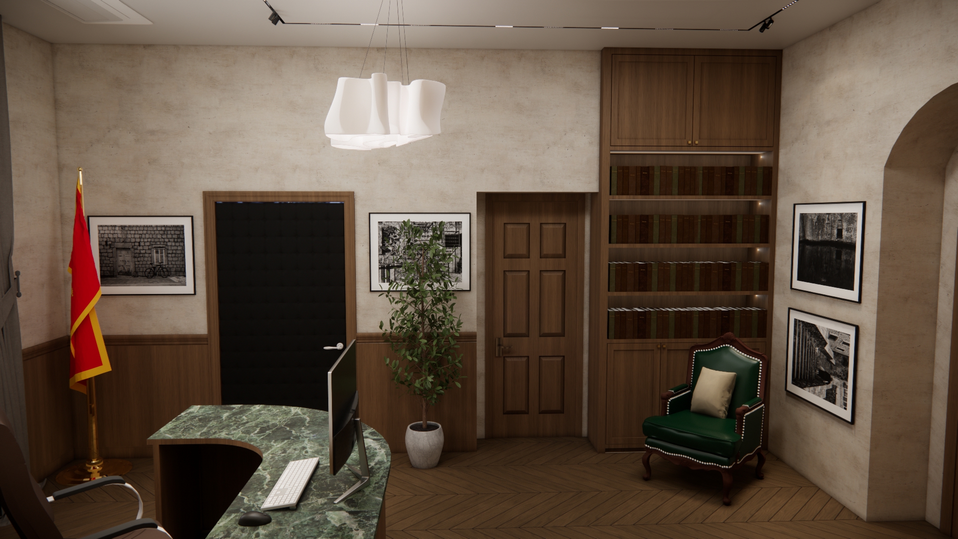 keep the original colors unchanged transform the scene into a photorealistic architectural render with advanced lighting golden hour or soft daylight realistic shadows reflections and global illumination add lifelike people with natural poses and motion blur enhance materials glass concrete wood with realistic textures and imperfections include environmental richness vegetation subtle weathering ground details add depth of field and cinematic atmosphere for a professional visualization look