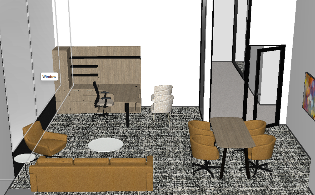 add decor on the desk and shelves add laptop on the huddle table make realistic add plants