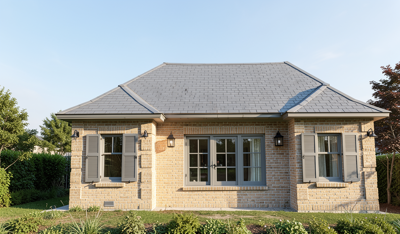 keep everything thing the same make this into a photo realistic rendering make a u shaped driveway in the front