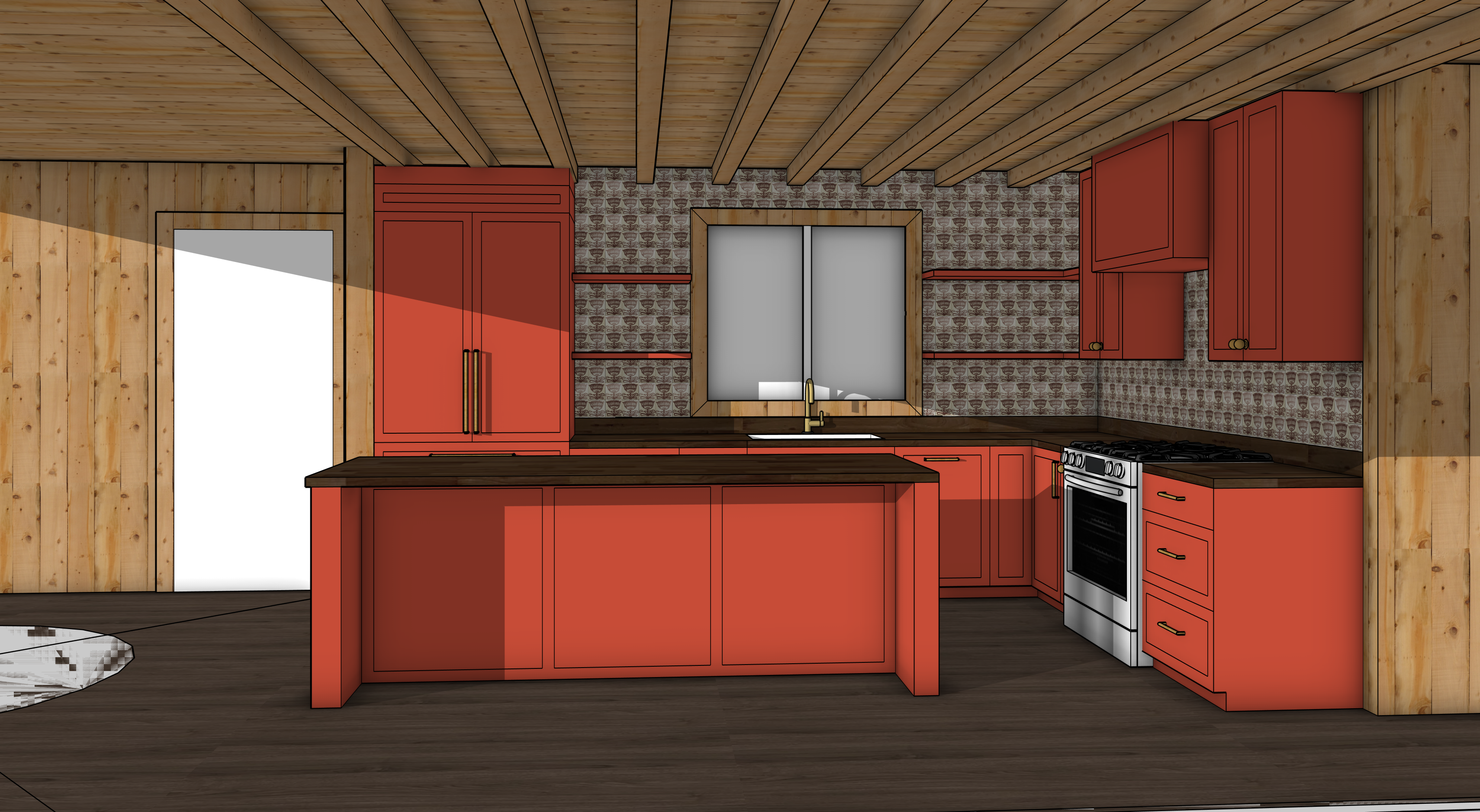the uploaded image is a finished sketchup interior scene with final materials already applied preserve the camera angle room layout and furniture placement exactly as shown all materials must remain unchanged including the fabric the upholstery the rug the fireplace surround the mantel and the wood flooring do not reinterpret fabrics colors or textures enhance the image by adding realistic lighting shadows and material depth only to create a photorealistic architectural rendering strict preservation keep all fabrics patterns colors and materials exactly as shown material fidelity required