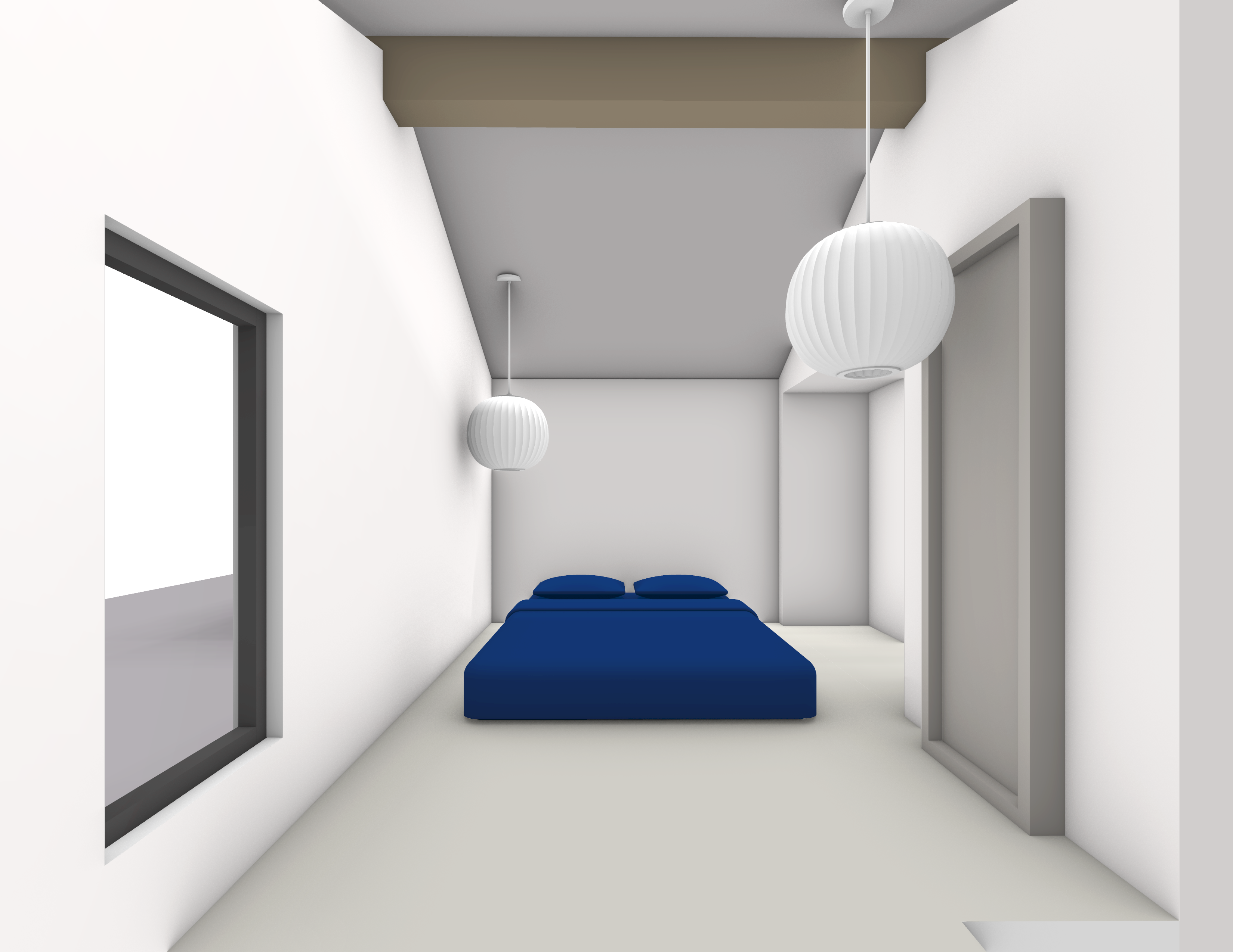 interior walls and ceilings are white light 4 foot by 8 foot birch flooring mirror is on right wall in grey box add reflection light the articial lights with a balance of natural light from window