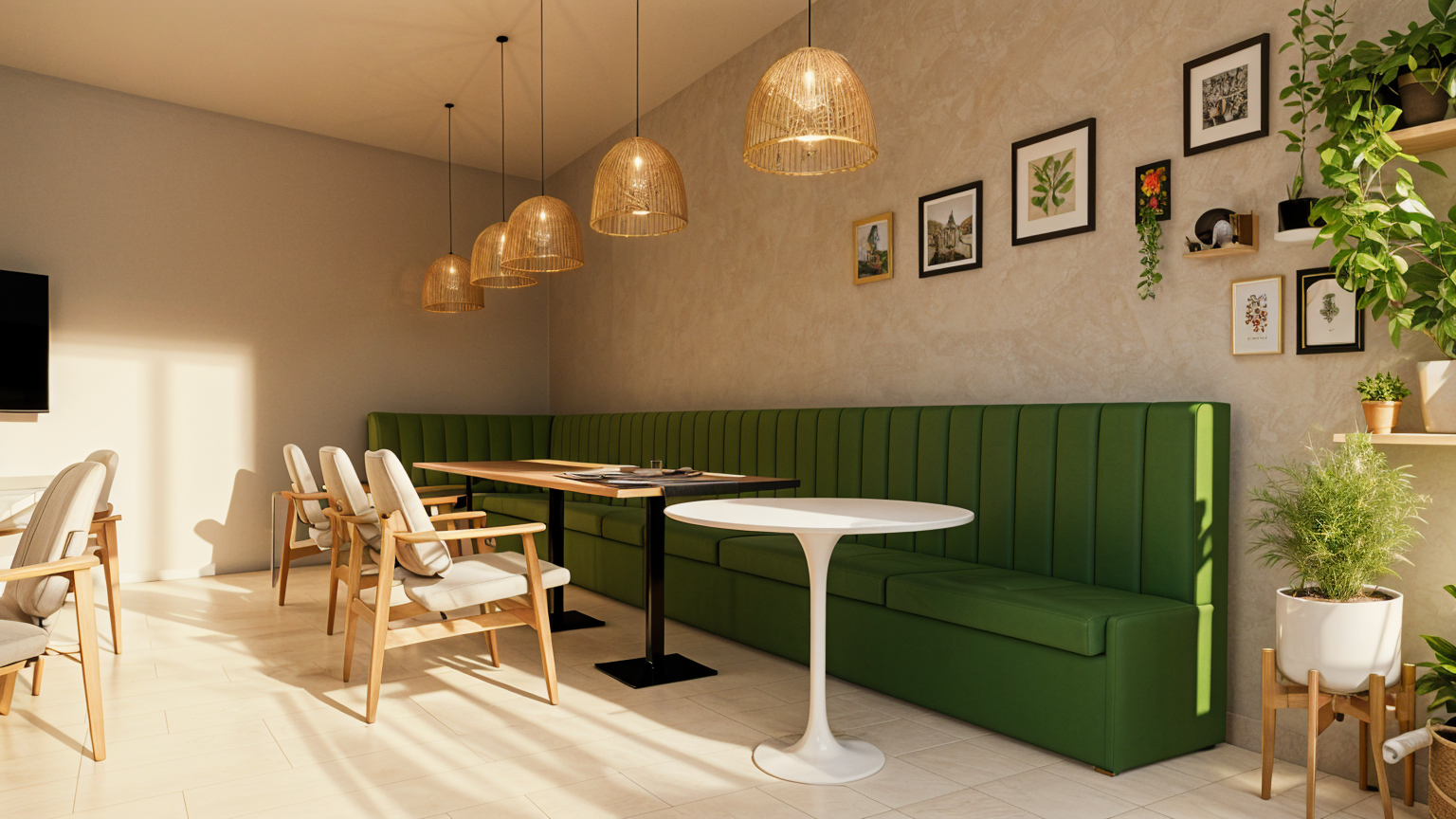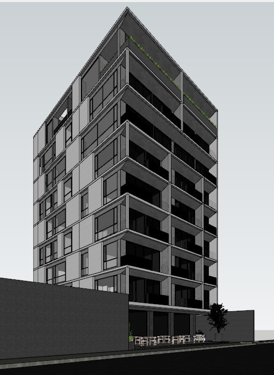 exterior shot exterior shot stunning urban street scene featuring a modern sleek apartment building the building has a minimalist gray facade accented by dark reflective glass windows vertical planters host lush greenery cascading softly from each balcony adjacent a classic brick building adds contrast with warm red and brown tones the street below is bustling with life people casually walking a tree providing fresh greenery and a cafe with beige umbrellas and seating the ground has a neatly paved sidewalk next to a subtle stone wall the atmosphere is vibrant and contemporary filled with bright natural daylight that casts gentle shadows suggesting a peaceful sunny afternoon in the city architecture architecture