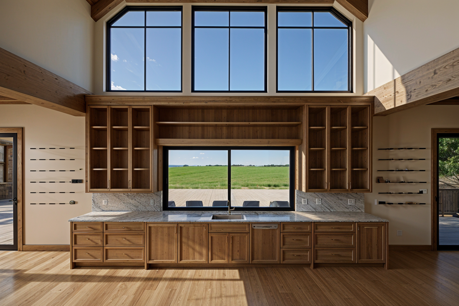 show a light grey standing seam metal roof dark grey corbels and 4 banding around windows and doors as shown there is a dark grey hanging shutter above the 3 windows to the right side of the entry doors which are set back 4 from the entry columns and the wall finish in this section should be smooth stucco dark grey dappled paver sidewalk from entry doors sweeping to the garage garage doors are colonial style with windows in the top panel the garage bays and far right side of home have light blue horizonal type siding that is 8 wide and the windows and doors are trimmed with 4 bands the 2 windows on the far right side of home have dark grey bahama shutters over the top quarter of each window this sections protrudes 2 beyond the other window with the bahama shutter the garage bay closest to the entry extends 2 forward of the outside garage bay tropical landscape with blue sky and fair weather clouds