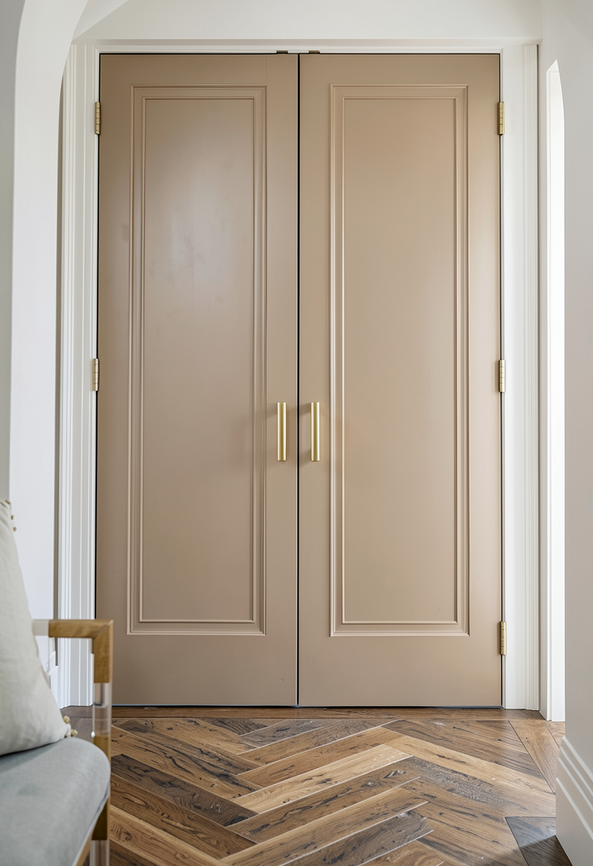 make doors a medium beige colour maintain door profile in original image which is a two step shaker profile floor is white oak in medium stain