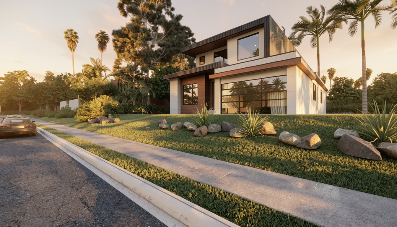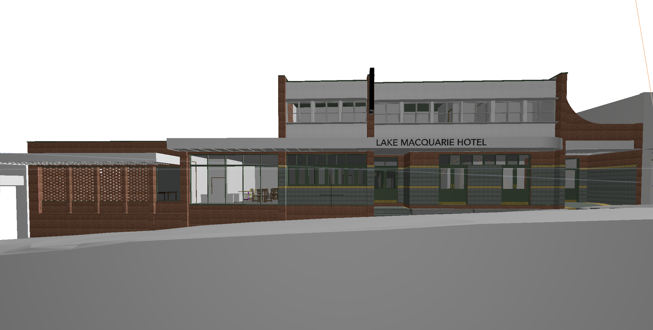 create a dusk time render of this pub include internal and external lighting as well as cars and people on the street