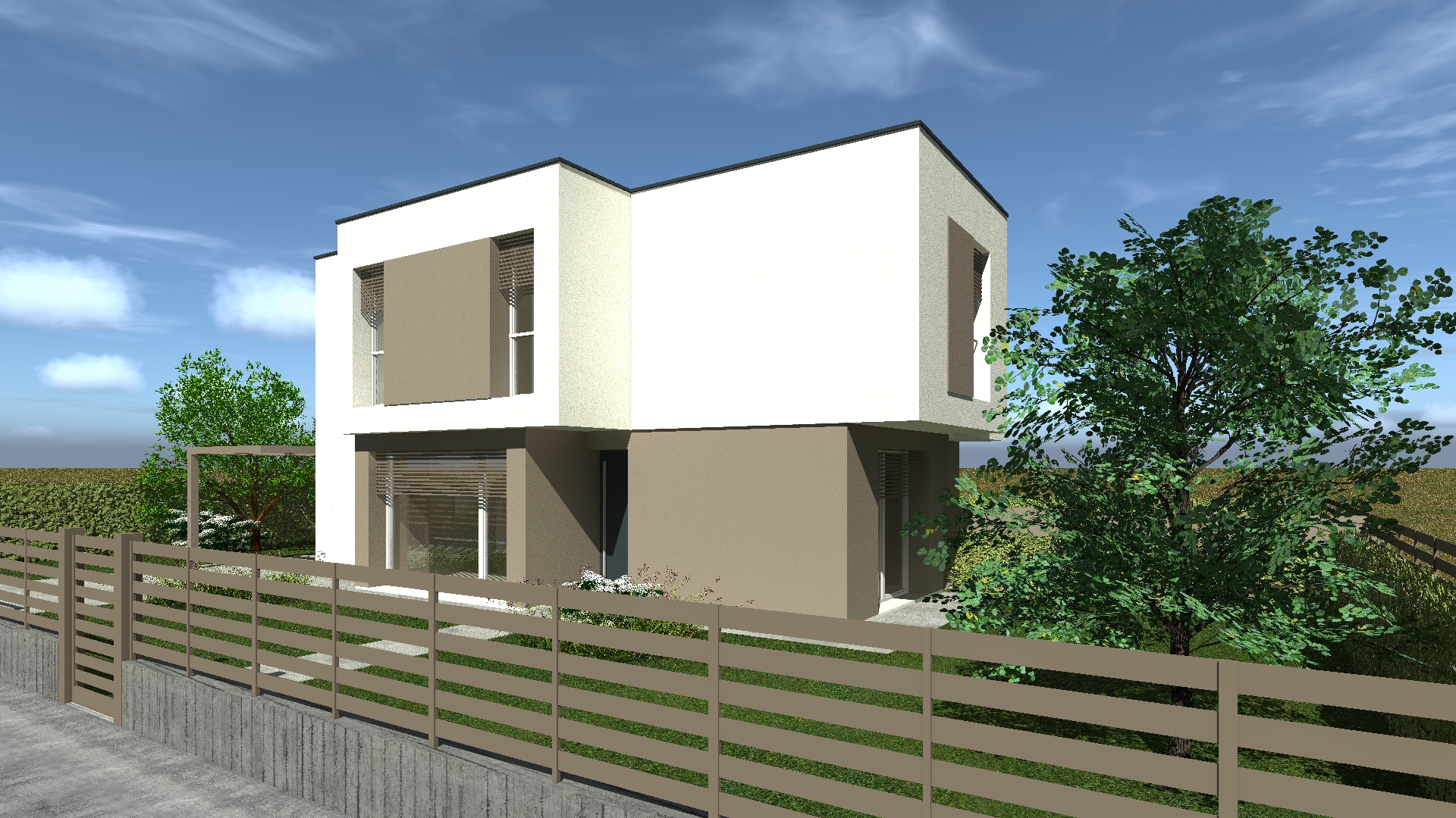 do not modify shapes colors and textures make photorealistic in 4k by only improving lights residential background landscape and textures non modificare colore pilastri piscina a sfioro colore intonaco materico