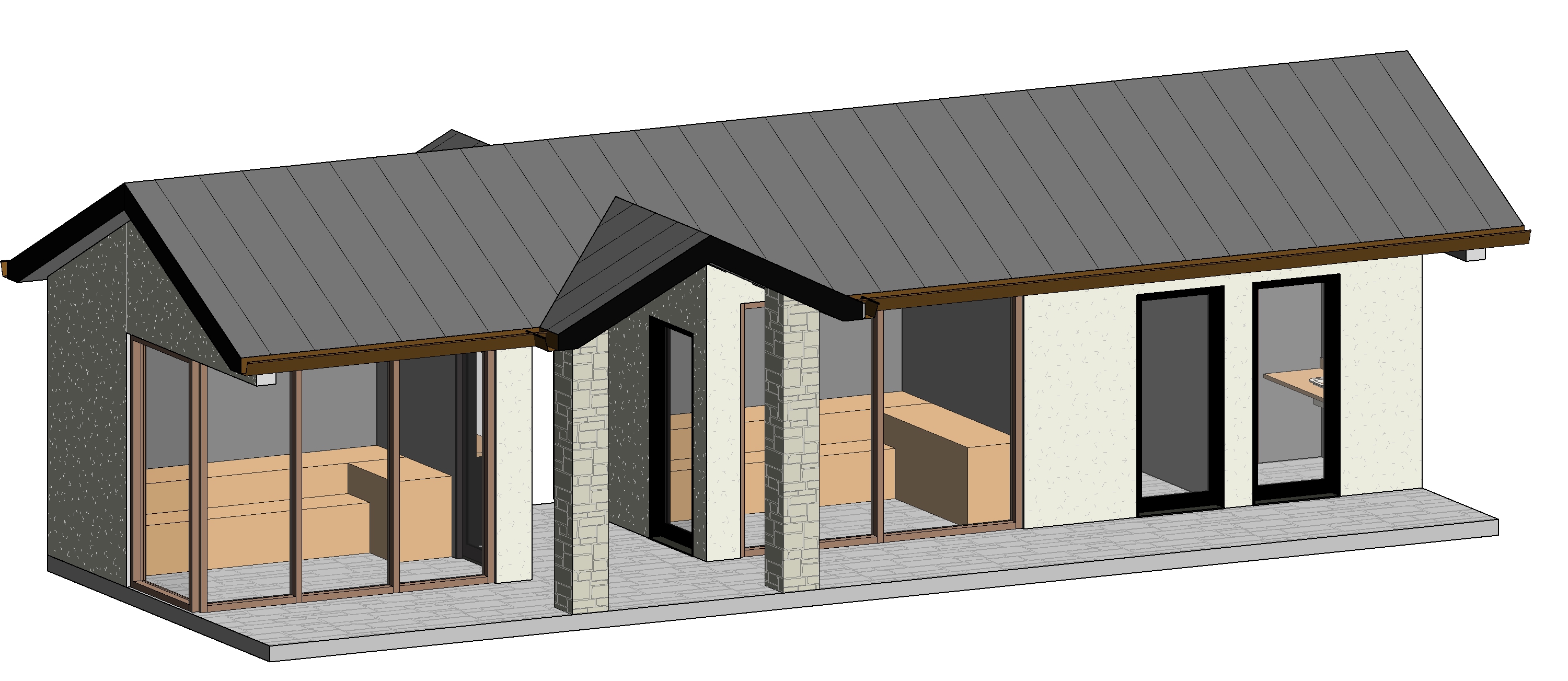 stone on the ground more natural outdoor lighting black door and window frames planters on the front