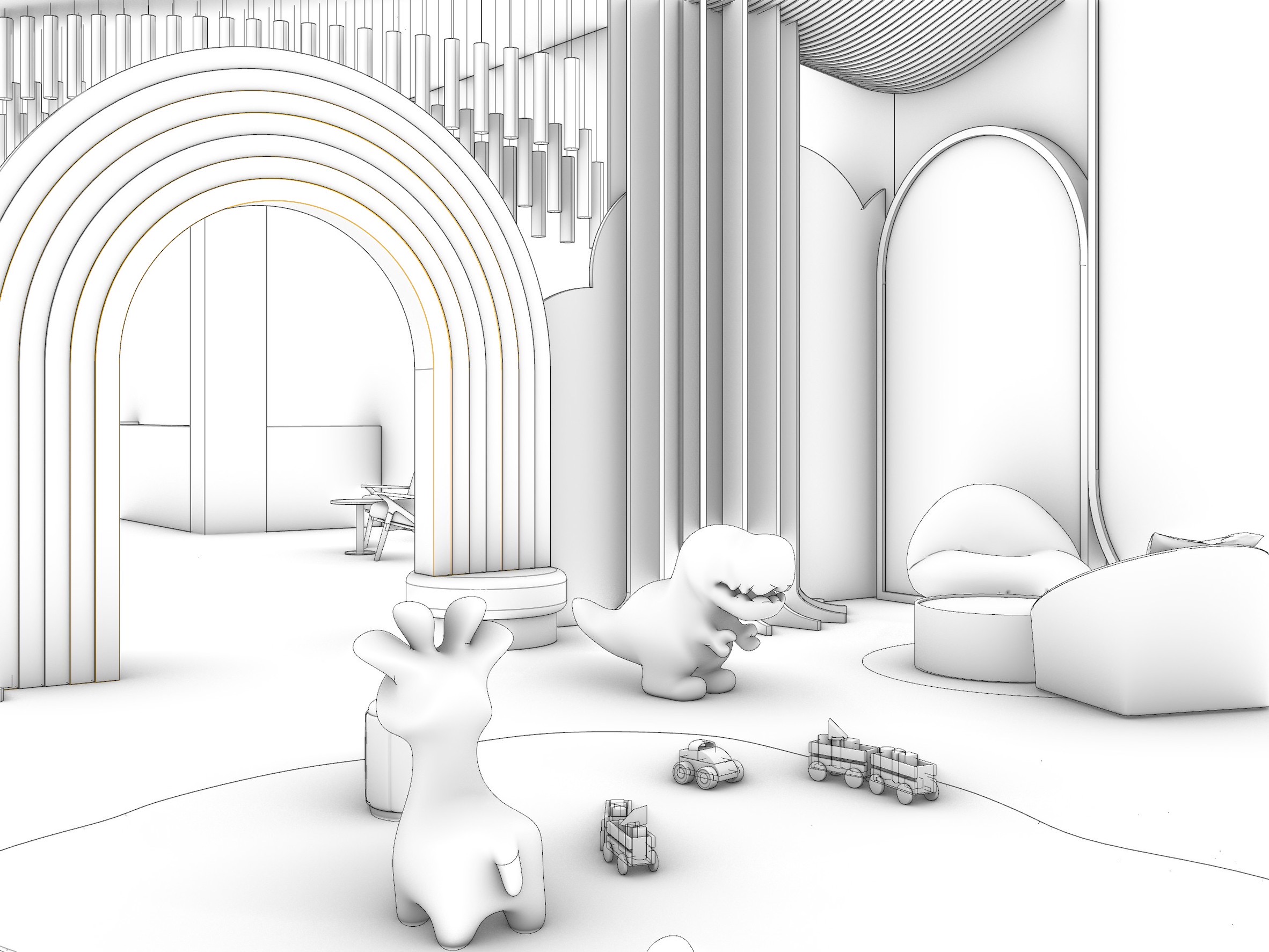 zaha hadid interior shot warm cream color style gray color metal and marble finish children room color animals architecture