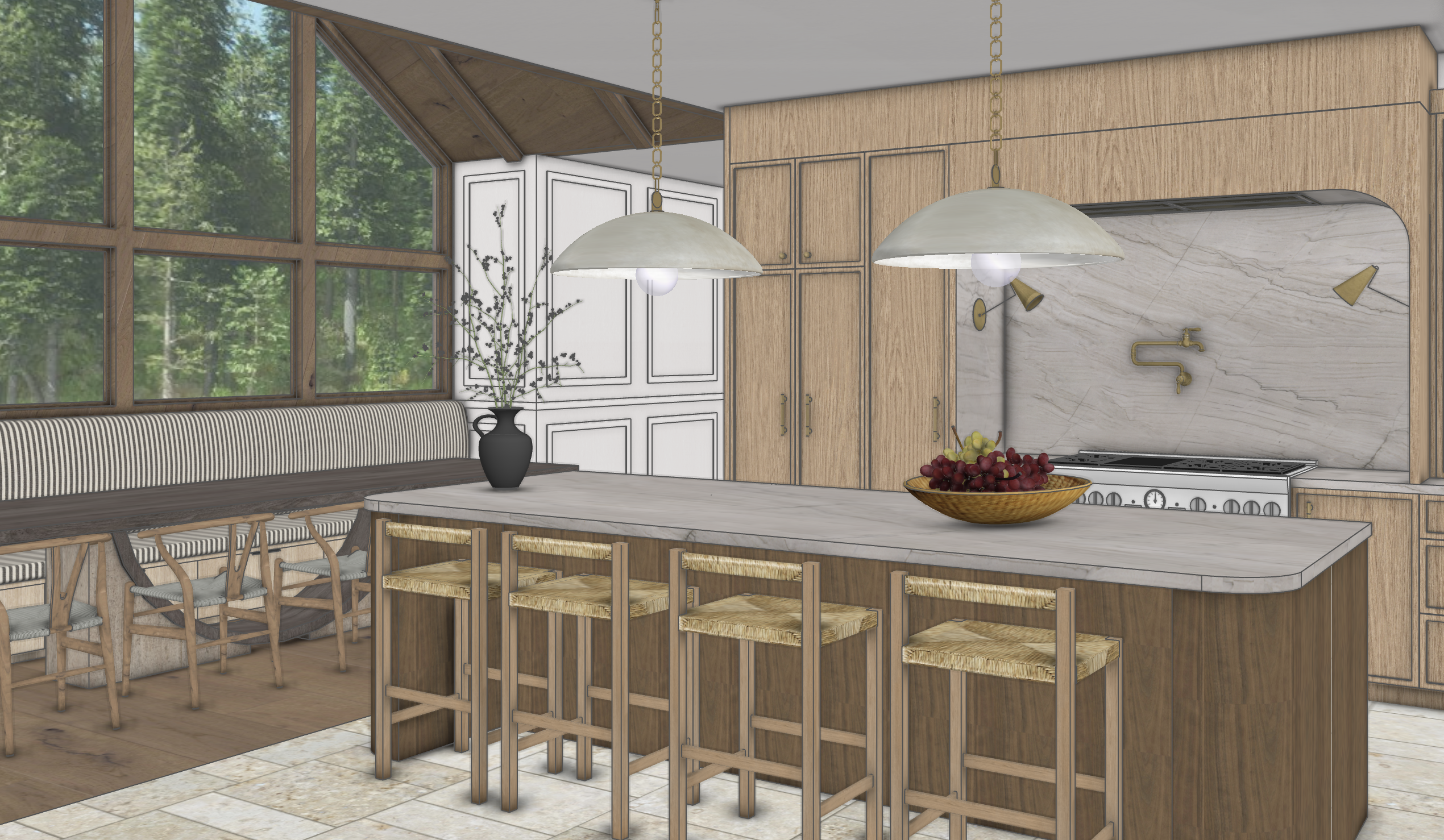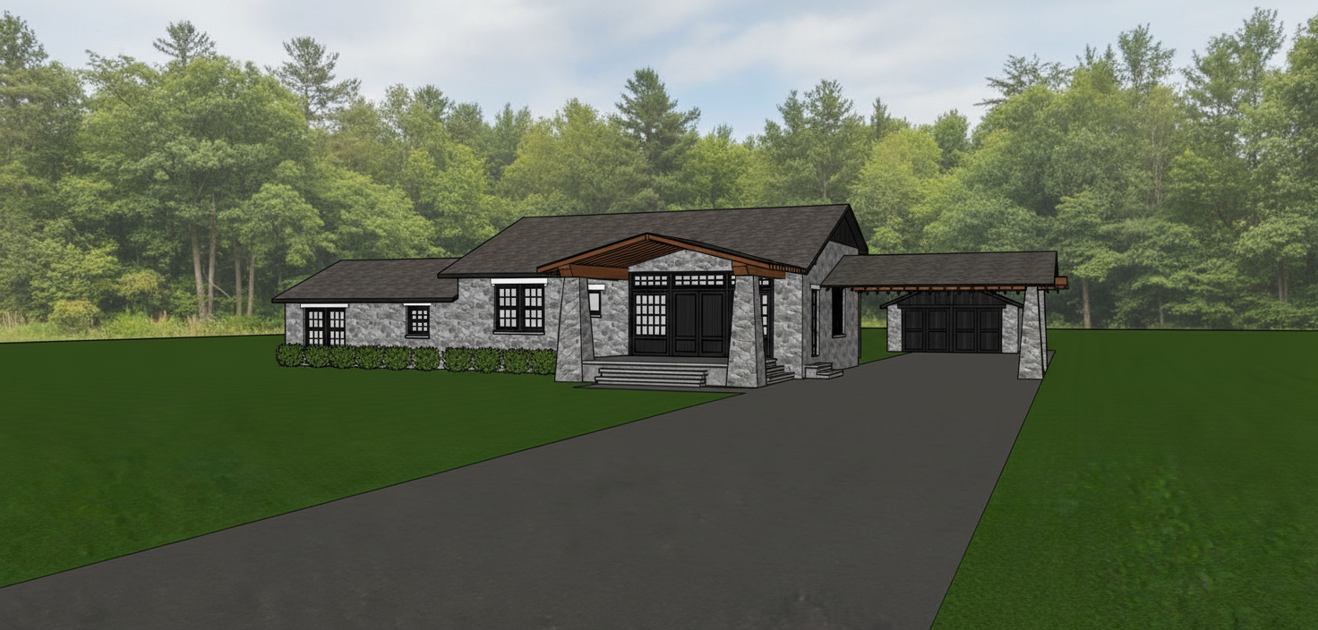 minimalism interior shot please create a rendering that shows half of it as photorealistic and the other half as a sketch with rough annotations or dimensions architecture