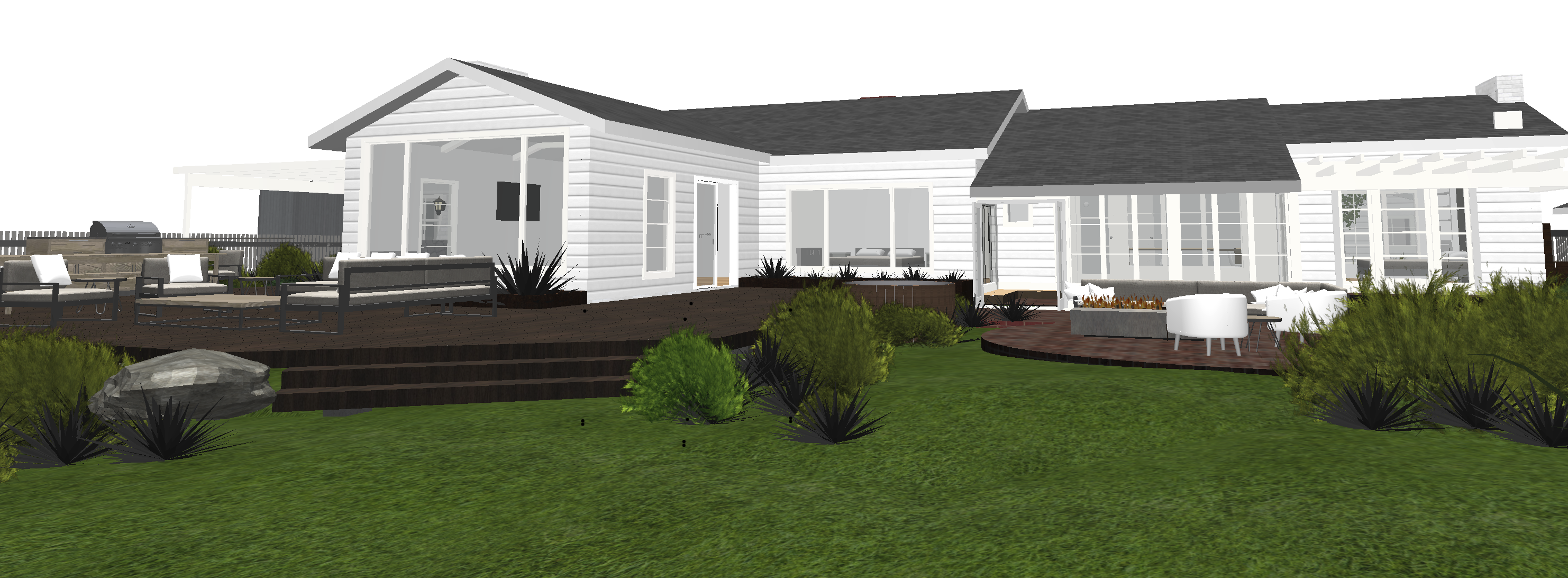 couple snuggling on the outdoor couch with wine and cheese sitting on the concrete fire pit reduce the scale of the couple and the furniture the patio is brick where the fire pit is