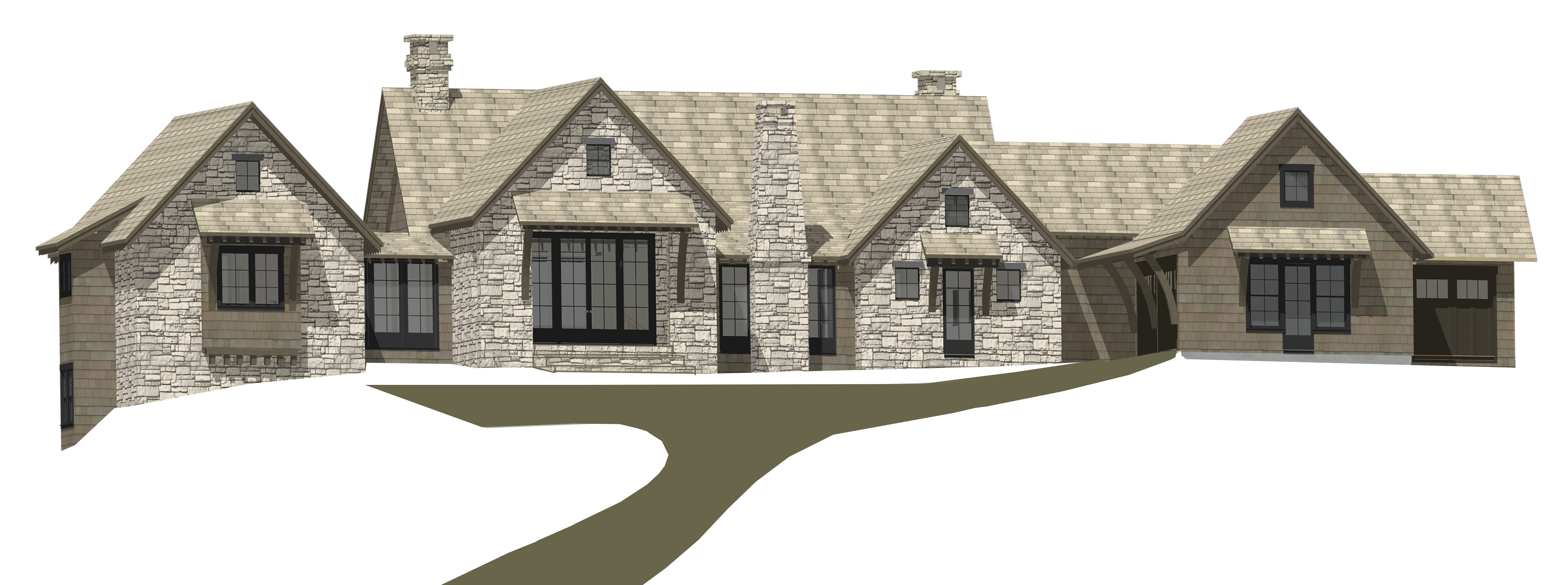 convert this horizontal cad rendering into a horizontal format photorealistic image keep the structure exactly as drawn keep the materials in the same place as shown on the cad rendering add realistic window reflections with black frames soft natural daylight add natural landscaping and some trees hydrangeas and hastas in front of the building the driveway is brown river pebbles in the background a large hardwood trees and a blue sky iphotography style taken with a 24mm lens f 2 8 ultra high resolution image created craftsman home in a wooded retreat edit share unfortunately you are not understanding my prompts you keep changing materials and architecture image created charming stone and cedar house in nature edit share