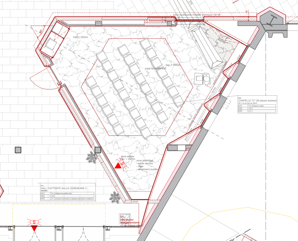 convert this floor plan into a realistic isometric 3d view of a full house show the space from an elevated angle with furniture walls and details visible ceci est une chapelle fun raire des fen tres en vitraux sont r parties dans la pi ce 3 fen tres sont sur le mur de droite et une est en bas du plan le cercueil est en haut droite sur une estrade de 42cm de hauteur derri re il y a une projection beamer du d funt en haut gauche il y a une armoire discr te peinte en blanc a c t de la porte d entr e les mat riaux sont sol ardoise noir socle marbre blanc murs gros cr pi blanc portes peinture blanche use the same furniture as shows on the plan do not change the orientation of the floorplan