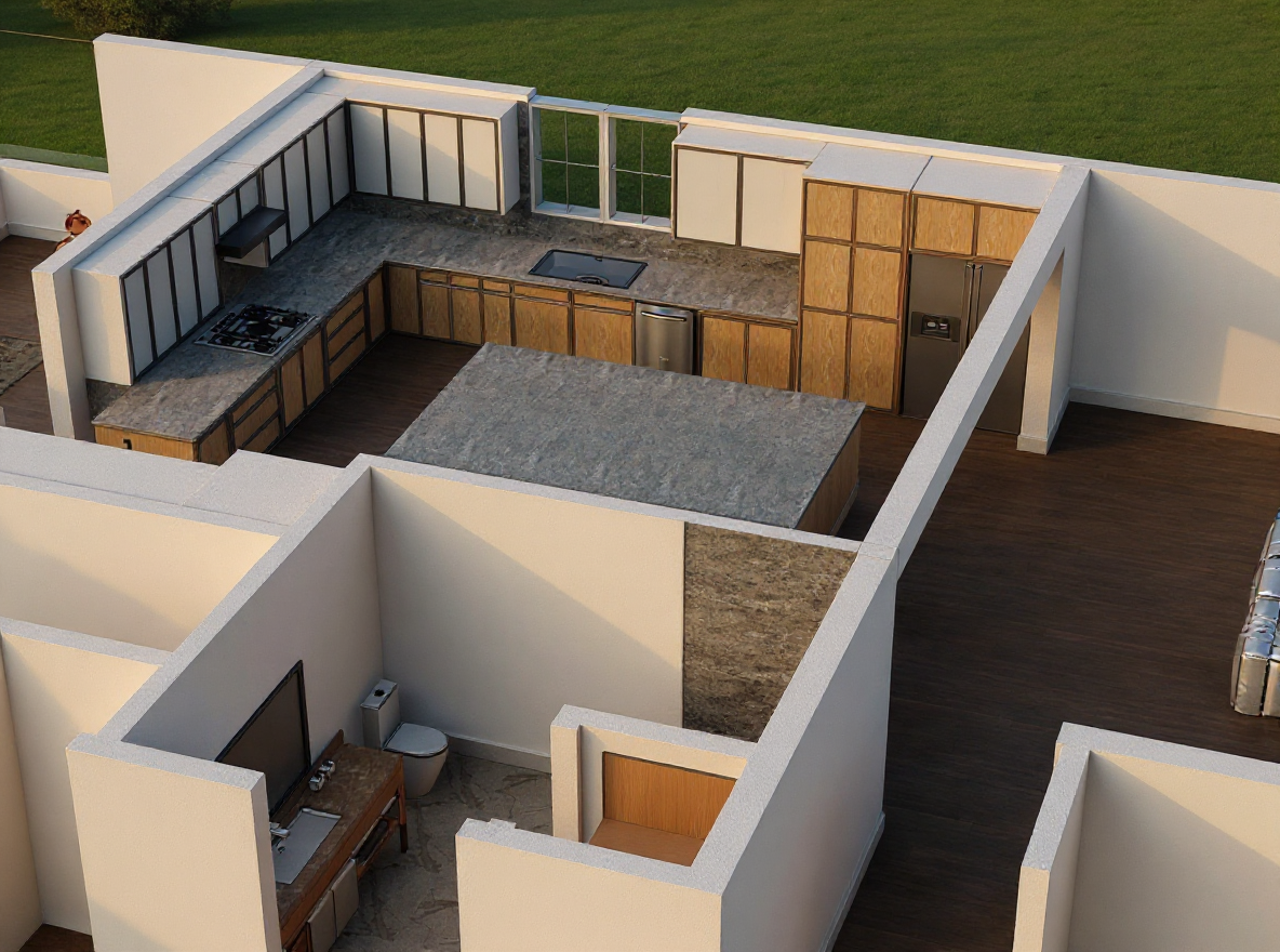 greige painted cabinets oil rubbed bronze hardware and faucet dark stained wood open shelving white washer and dryer follow drawing exactly with notations