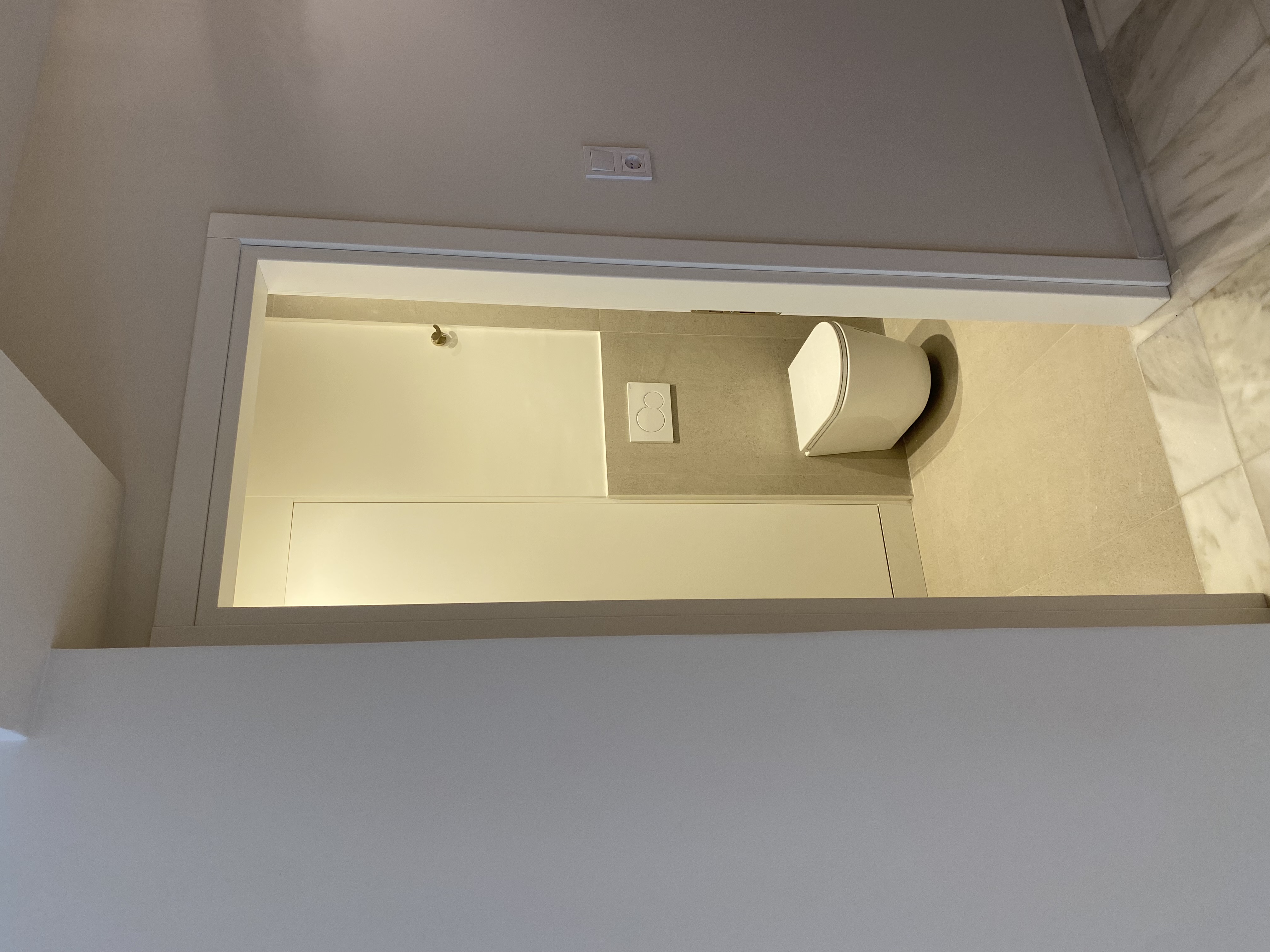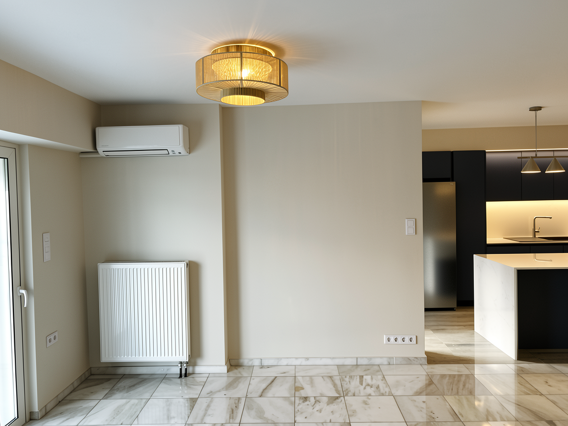 enhance this image in a professional real estate photography style while strictly preserving the original scene the flooring must remain exactly unchanged do not modify regenerate enhance reinterpret or replace the marble texture pattern veining tile layout joints reflections or color in any way the floor must remain pixel identical to the original image do not apply any smoothing sharpening contrast or detail adjustments to the floor area all enhancements sharpness clarity noise reduction exposure color balance must be applied only to walls ceiling cabinetry and other elements not to the floor preserve all lighting exactly as is do not change light sources intensity or color improve overall image quality by reducing noise and increasing clarity in non floor areas only maintain natural realistic textures and avoid any cgi or artificial look do not change layout materials or objects only enhance the existing photograph while keeping the floor completely untouched