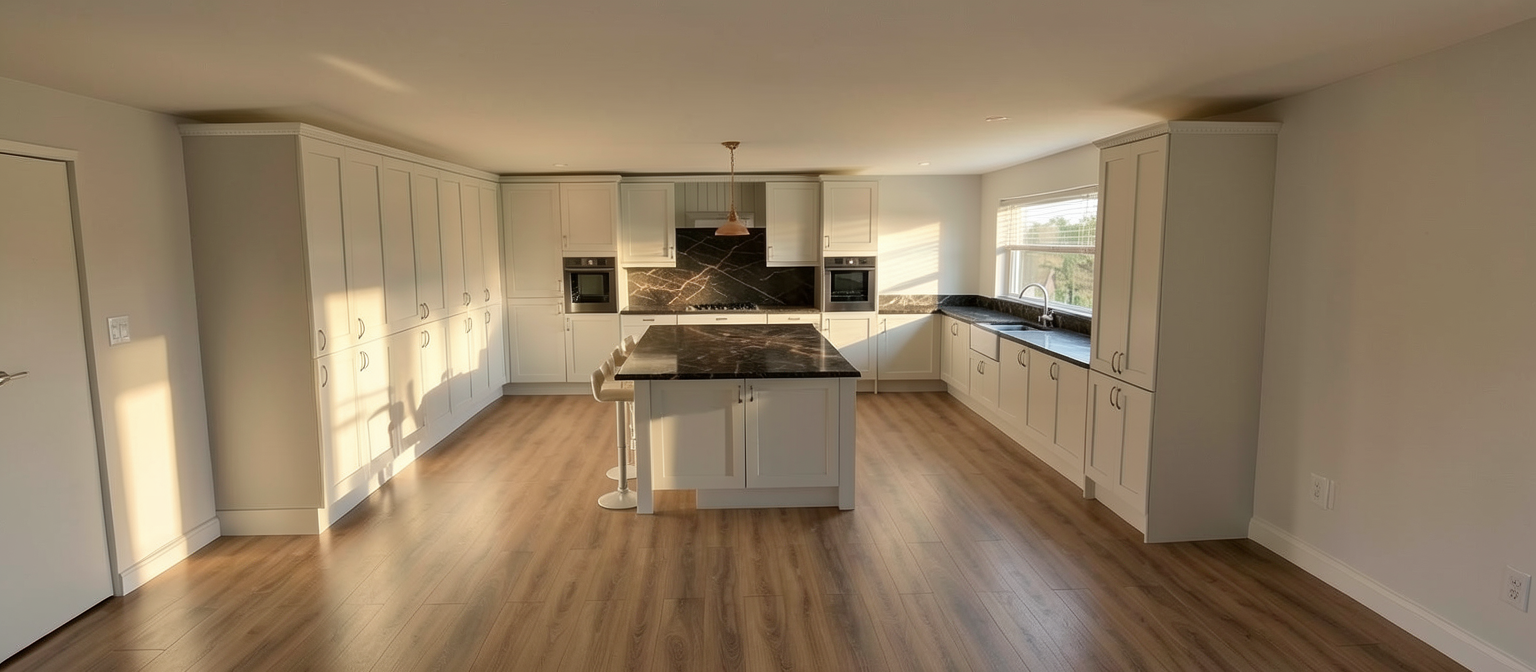 erstelle ein realistisches bild ber den estisch eine pendelleuchte aus glaskuge im luftraum mittig