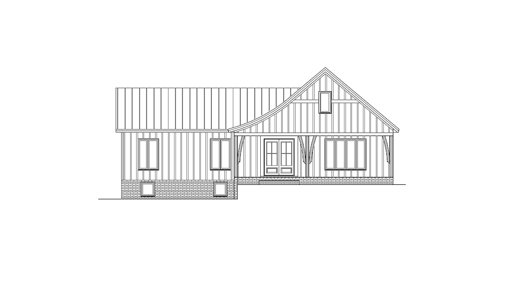 exterior shot cottage with white siding black windows white brick and black metal roof lush landscaping