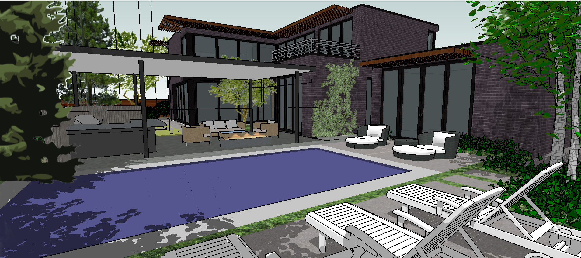 style modernist exterior light and airy design intent clean orthogonal lines slim black accents minimal trims generous glazing with reflective low iron glass materials palette warm white smooth stucco vertical ipe thermally modified ash accents lightly oiled porcelain travertine pavers in warm beige rectified joints 3 4 mm black anodized aluminum frames edge trims pool interior light aqua mosaic 25 25 mm with subtle variation flush glass guardrail with thin black posts integrated linear led step bench lights landscape lush emerald turf layered planting beds with mixed grasses and seasonal flowering shrubs a few sculptural deciduous trees optional early autumn tones and low palms near seating restrained planters lighting clear blue sky soft sunlight gentle shadows white balance neutral warm no blown highlights water caustics visible but subtle camera hygiene two point perspective no vertical distortion 35 50 mm equivalent lenses eye level 1 6 m unless noted clean horizon no fisheye output hygiene presentation ready high res 2560 1440 crisp anti aliasing no watermark realistic reflections refractions no excess bloom cohesion rules preserve architecture and hardscape geometry between shots only vary camera and crop identical materials and planting species keep sun azimuth consistent late morning negative guidance no rustic industrial textures no overly glossy wet floors no cluttered d cor avoid thick window mullions avoid excessive lens flare or dramatic color grading scene central pool terrace and principal fa ade camera 40 mm eye level 1 6 m two point perspective slight left to right pan compose pool in foreground third house beyond showcase wooden wall accents and slim black edge trims glass guardrail visible sun angle from right front creating soft shadow rhythm across pavers focus water clarity with gentle ripples reflections of fa ade in glazing and pool surface people entourage 1 2 subtle figures for scale light contemporary attire minimal towels lanterns only deliver hero render tight crop on wood cladding meeting black trim