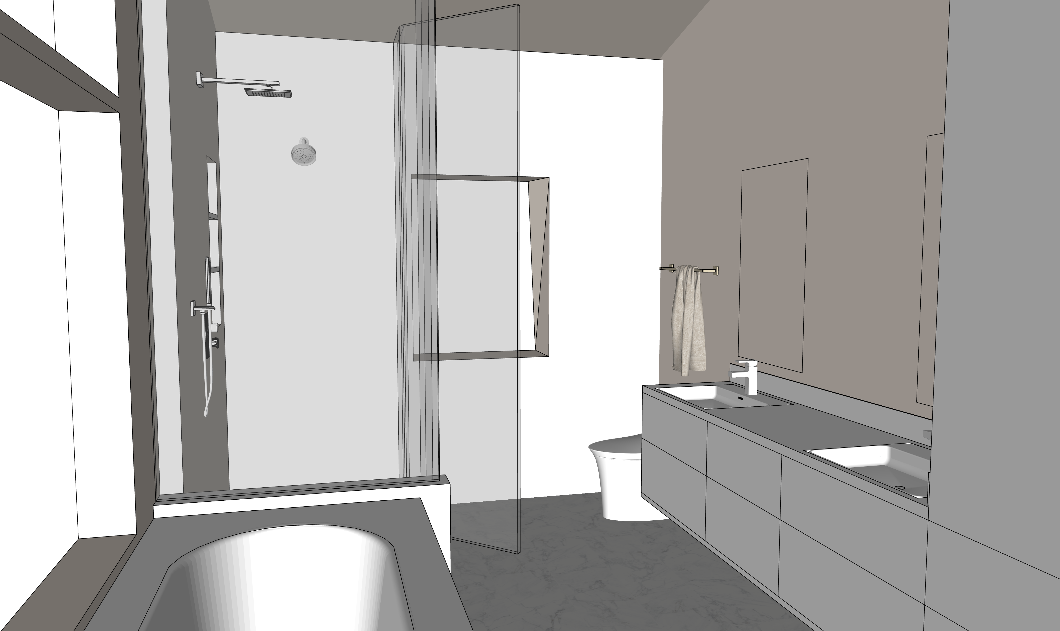 minimal zen japendi style master bathroom with neutral color scheme add led back lighting for mirrors and under floating sink warm lighting from lefthand windows