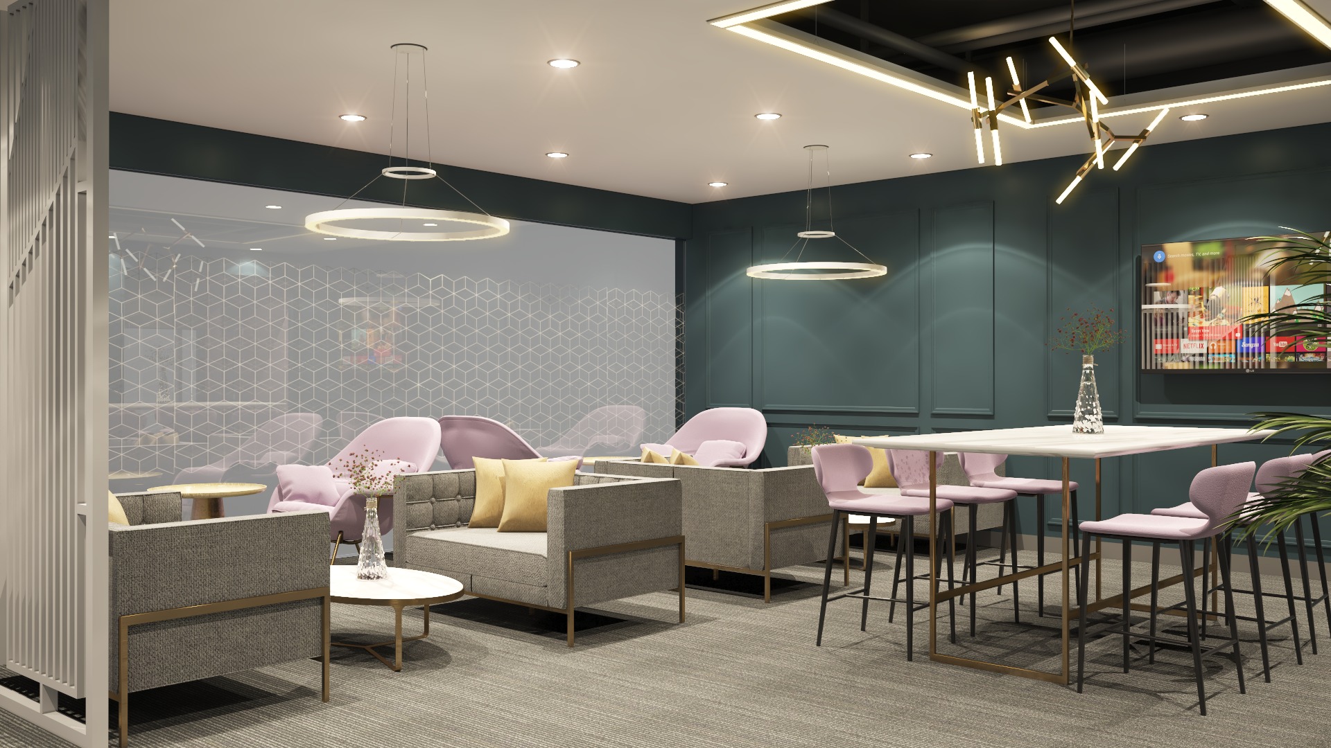 make it realistic with view on the window tv screen should show promotion and tone down the gold accents