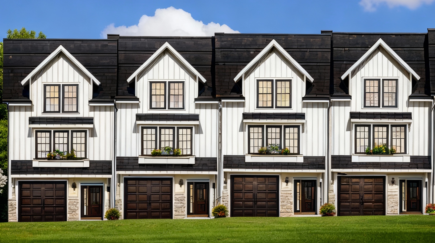 exterior shot paint brick white siding dark gray