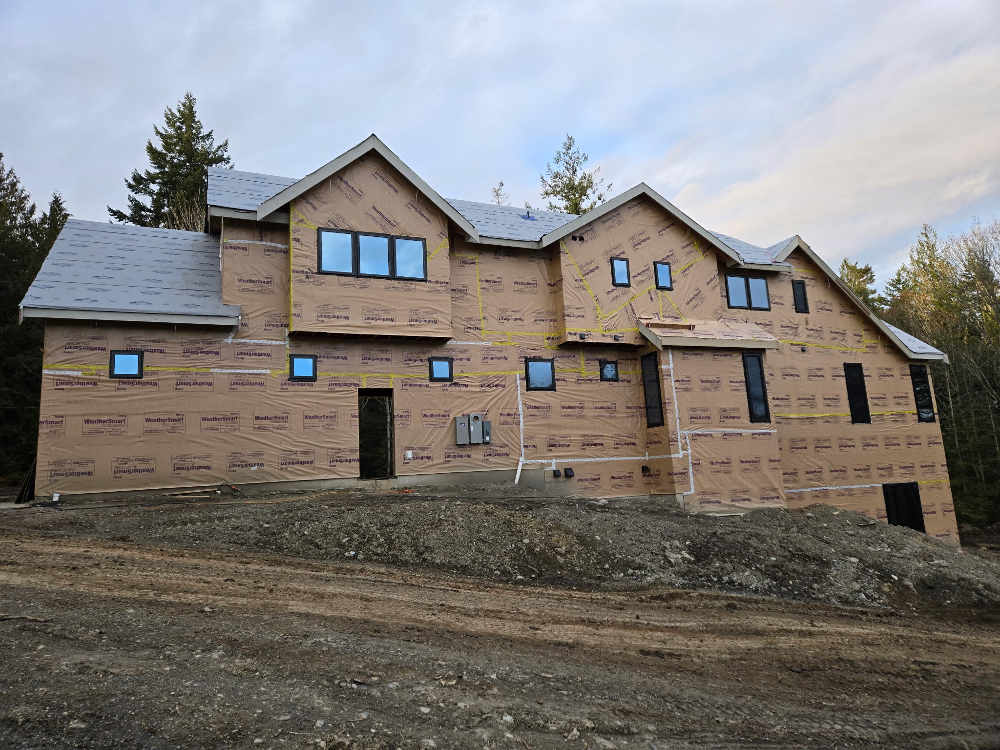 this is the side profile of a house not the front needs stonework siding wood paneling warm light grey colors