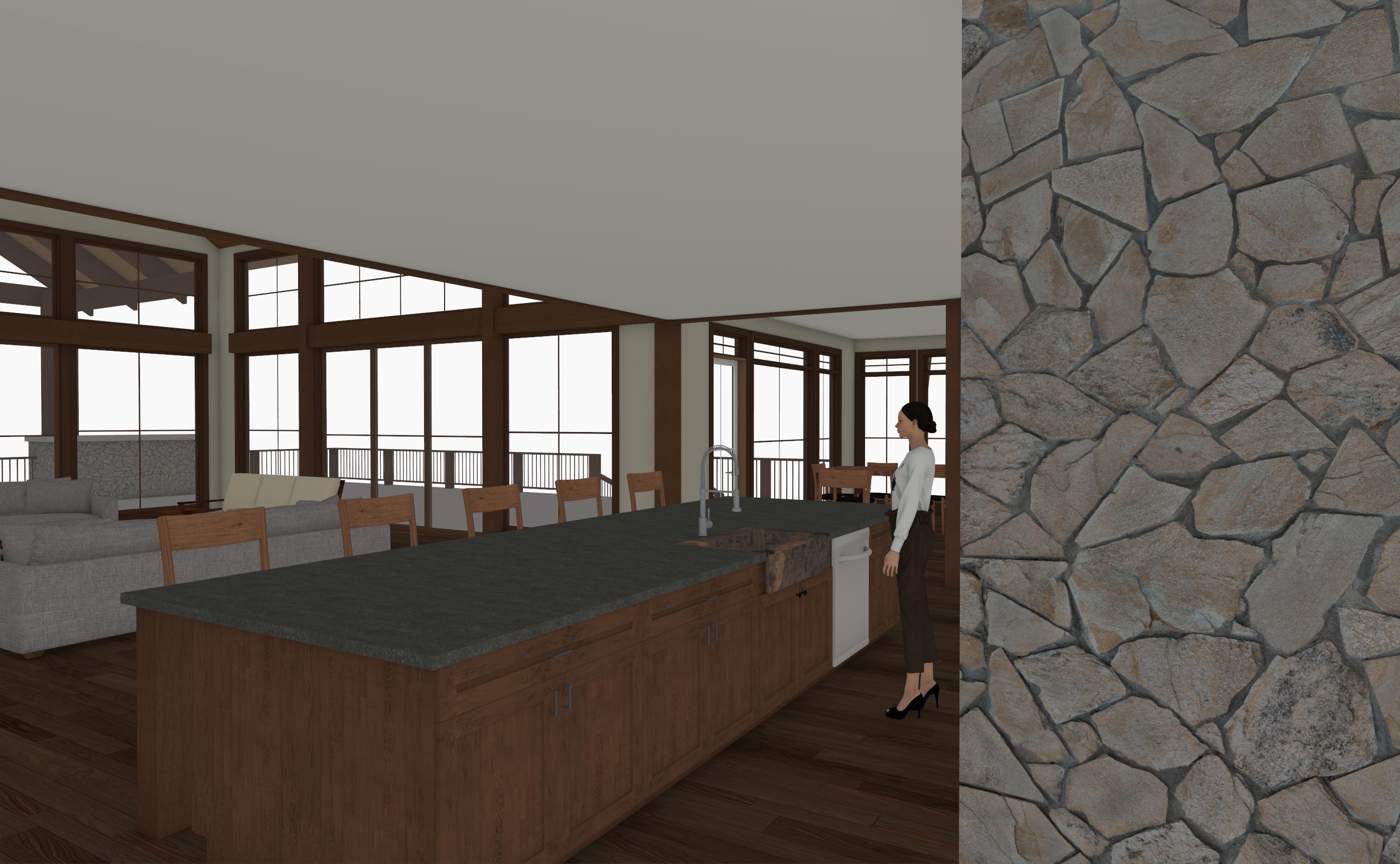 make interior look like a jackson hole interior rustic but modern make drywall walls and ceiling plaster it s important to keep the sizes of everything the same change textures and materials but keep the sizes of everything the same make rock realistic its important to keep to scale this room is big the person in background is 5 6 for scale do not change size of windows or doors do not add doors or windows do not change or add fixtures