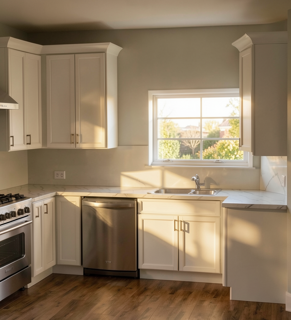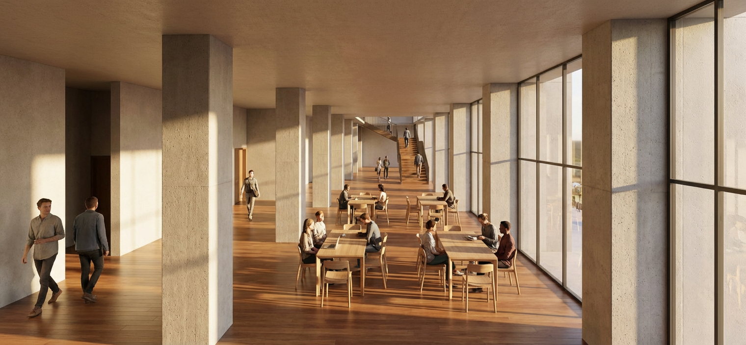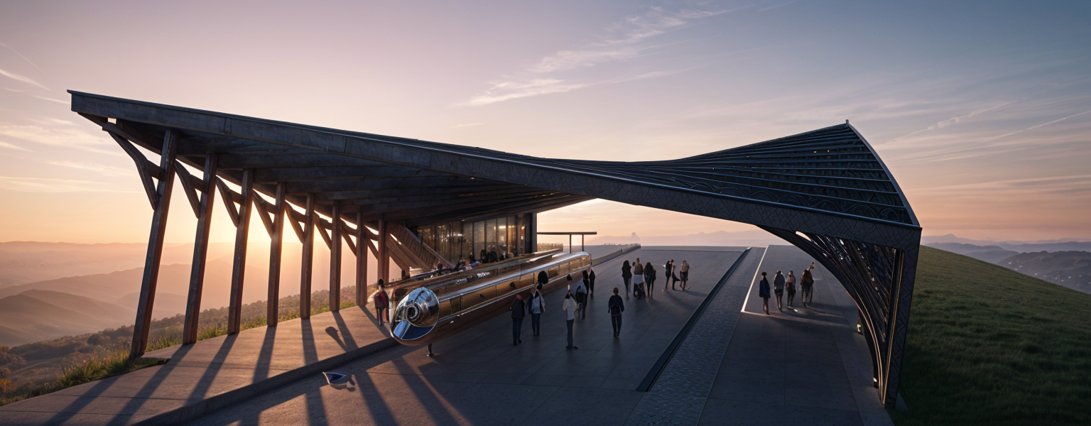 ultra realistic architectural visualization of a modern barndominium style home on a sloped hillside surrounded by a dense lush forest the main house is a two story structure with deep red siding and black trim featuring a long covered front porch supported by natural wood posts the porch spans across the front fa ade with concrete steps and a raised platform large rectangular windows with white frames are evenly spaced on both floors the main entry door is centered with sidelights attached to the right side is a lower garage volume integrated into the house to the left a separate detached garage building matches the same red siding and metal roofing connected by a wide light gray concrete driveway that slopes gently upward both buildings have standing seam metal roofs in a muted earthy tone the terrain is a grassy hillside with smooth grading and natural slopes in the foreground include a curved asphalt road edge with a concrete curb environment place the entire property within a lush dense forest setting with tall mature trees mix of pine and deciduous rich green foliage layered vegetation and natural undergrowth trees should surround the property while keeping the house clearly visible with depth and atmospheric perspective in the background add subtle forest floor details like shrubs ferns and filtered light through the canopy lighting soft natural daylight slightly overcast sky with realistic clouds gentle light filtering through trees creating soft shadows materials highly detailed textures wood grain posts metal roofing concrete asphalt grass tree bark leaves style photorealistic cinematic composition wide angle lens 24 28mm eye level perspective quality 8k resolution global illumination ray traced reflections physically accurate lighting sharp focus high dynamic range