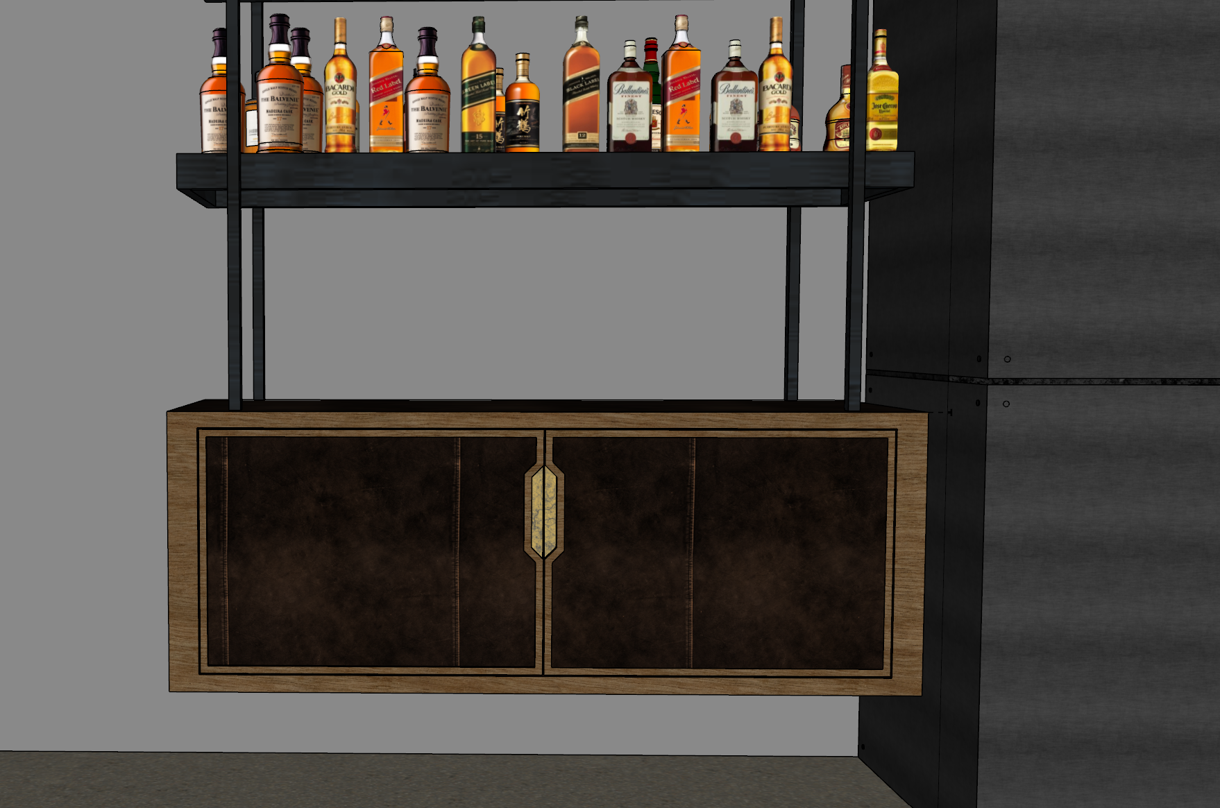 clad the door fronts with dark chocolate leather the trim around the cabinet is dark walnut veneer