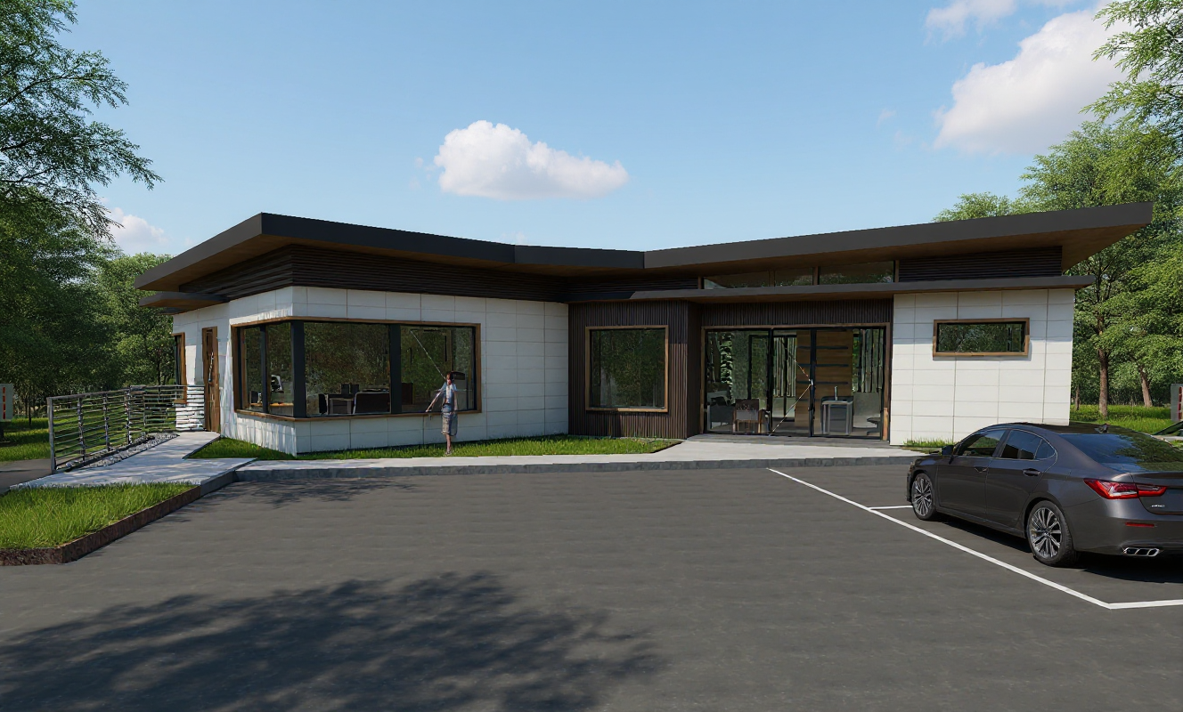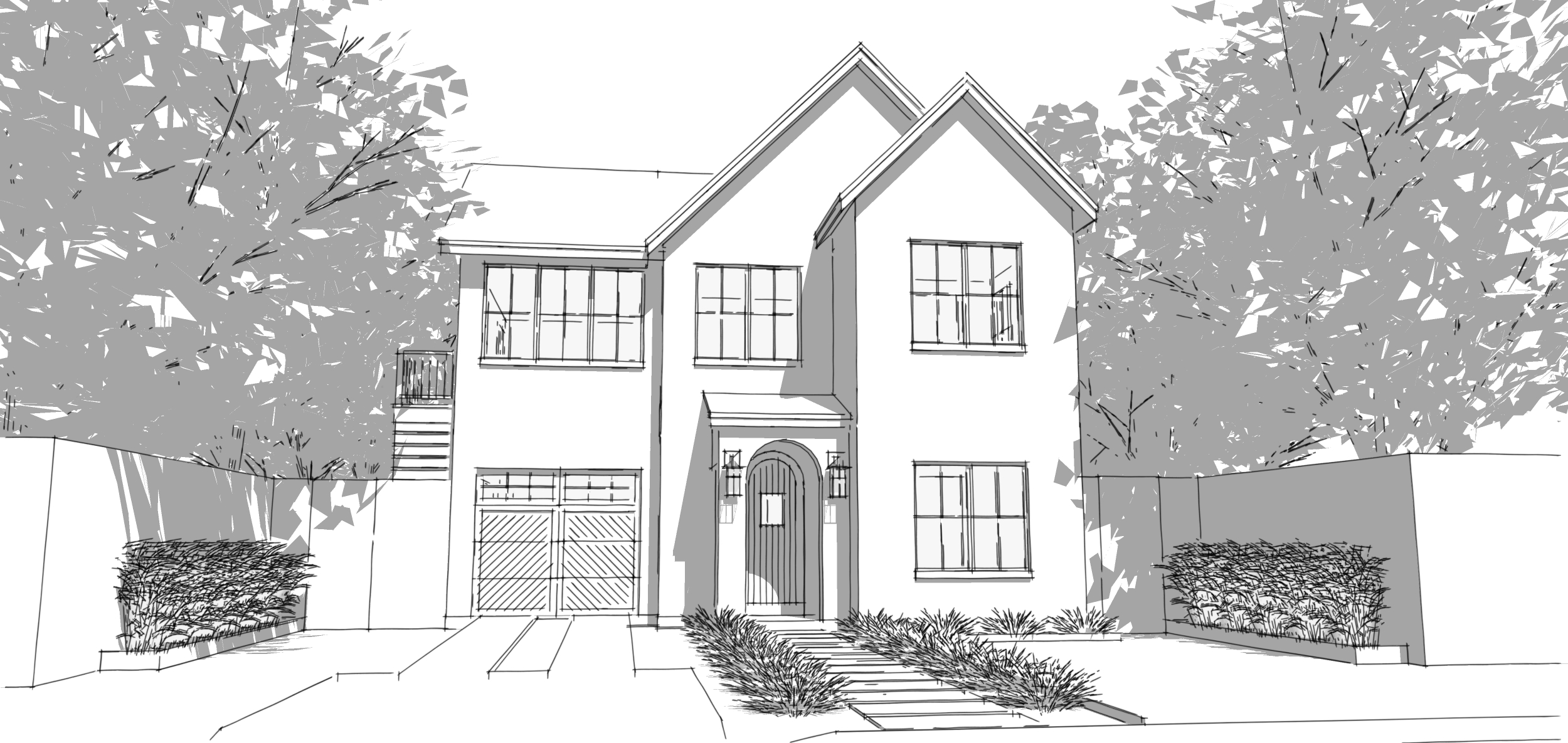 make a more attractive black and white rendering from this image do not change the design features of the house