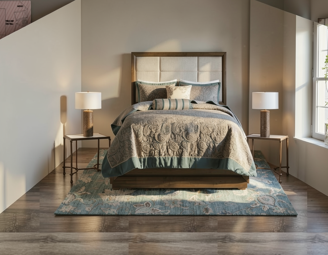 ultrarealistic render 4k neutral colours cold beige cover of the bed stone texture lk 1 piece seamless texture behind the bed