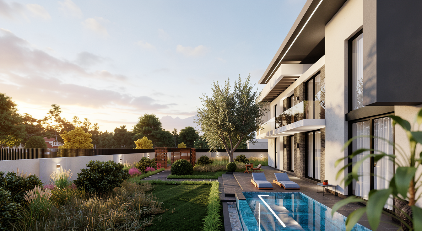 modern mountain cabin with white floor only other colour are green seats on the wooden chairs and plain brown colour kitchen with kitchen isle all lightings are white remove black lighting correct the kitchen based on the original concept correct the kitchen as it is on the original picture there is no kitchen leaned to the back wall please remove it