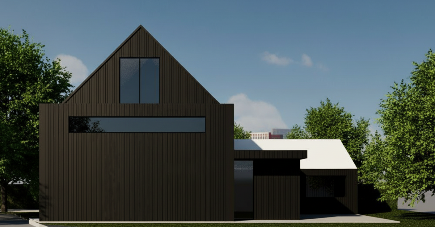 create photorealistic render back wall grey acoustic material feature lighting navy chairs grey feature carpet gold single glazing