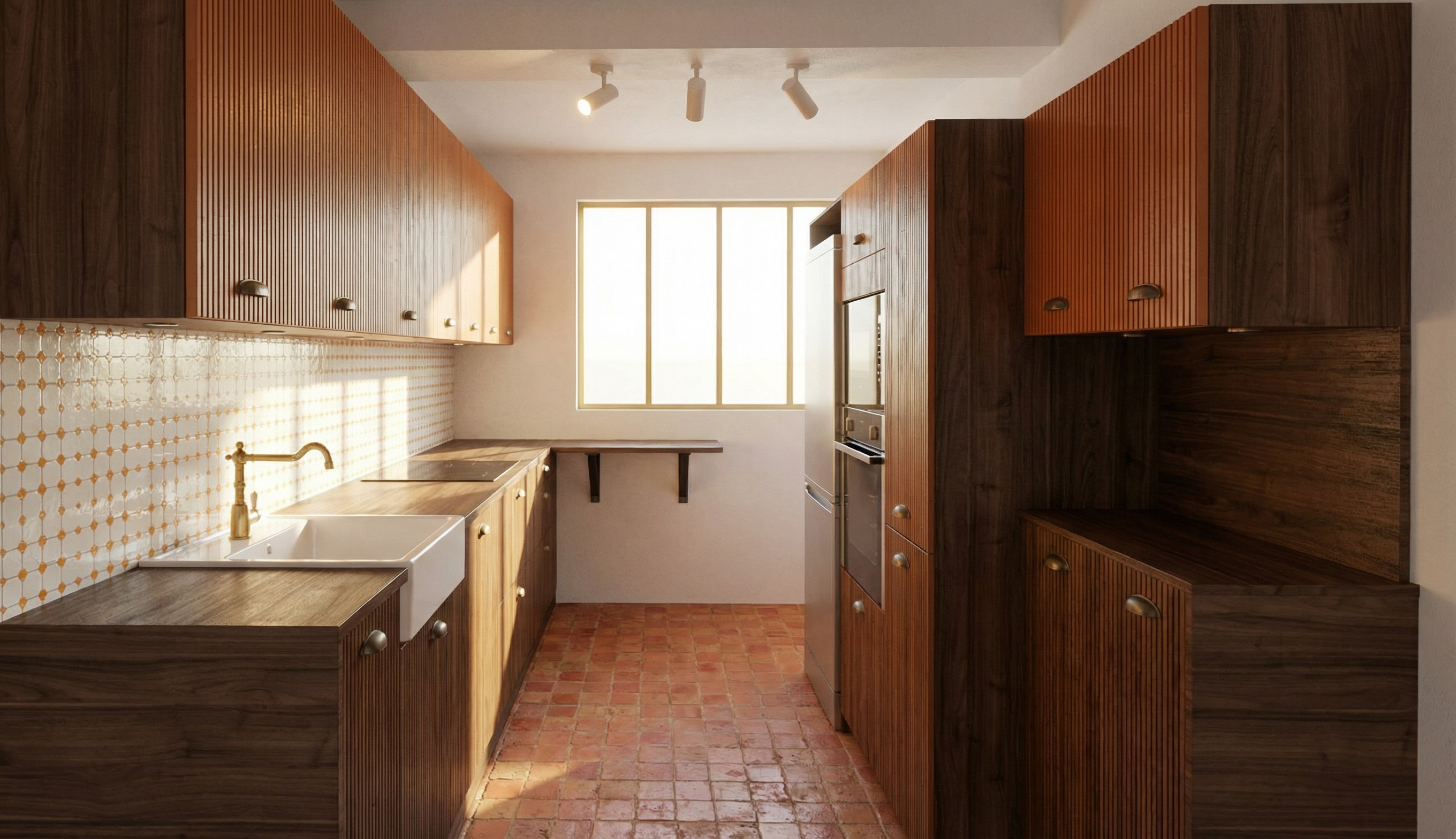 make the wood ceiling a light walnut color