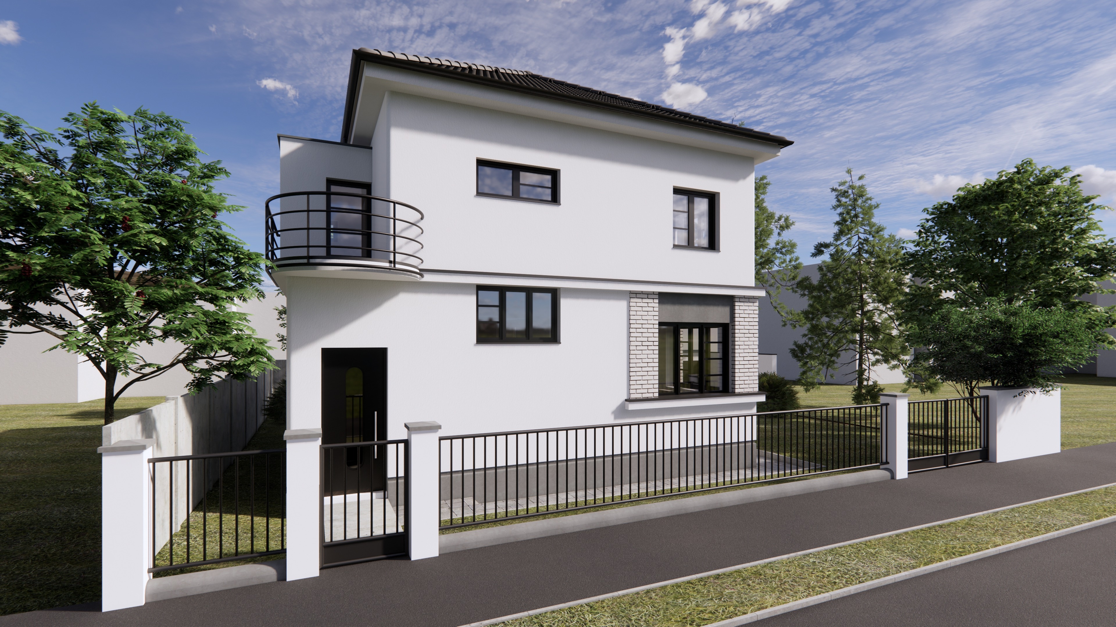 a modern bedroom interior with a cozy inviting atmosphere large bed with gray and white bedding soft and plush wooden floors in warm oak tones a stylish red side table next to the bed adding a pop of color a spacious window allowing natural light to flood in creating a bright and airy feel lush green plant in a cream colored pot adding a touch of nature and tranquility walls painted in a soft neutral beige for a calming ambiance minimalistic and elegant decor