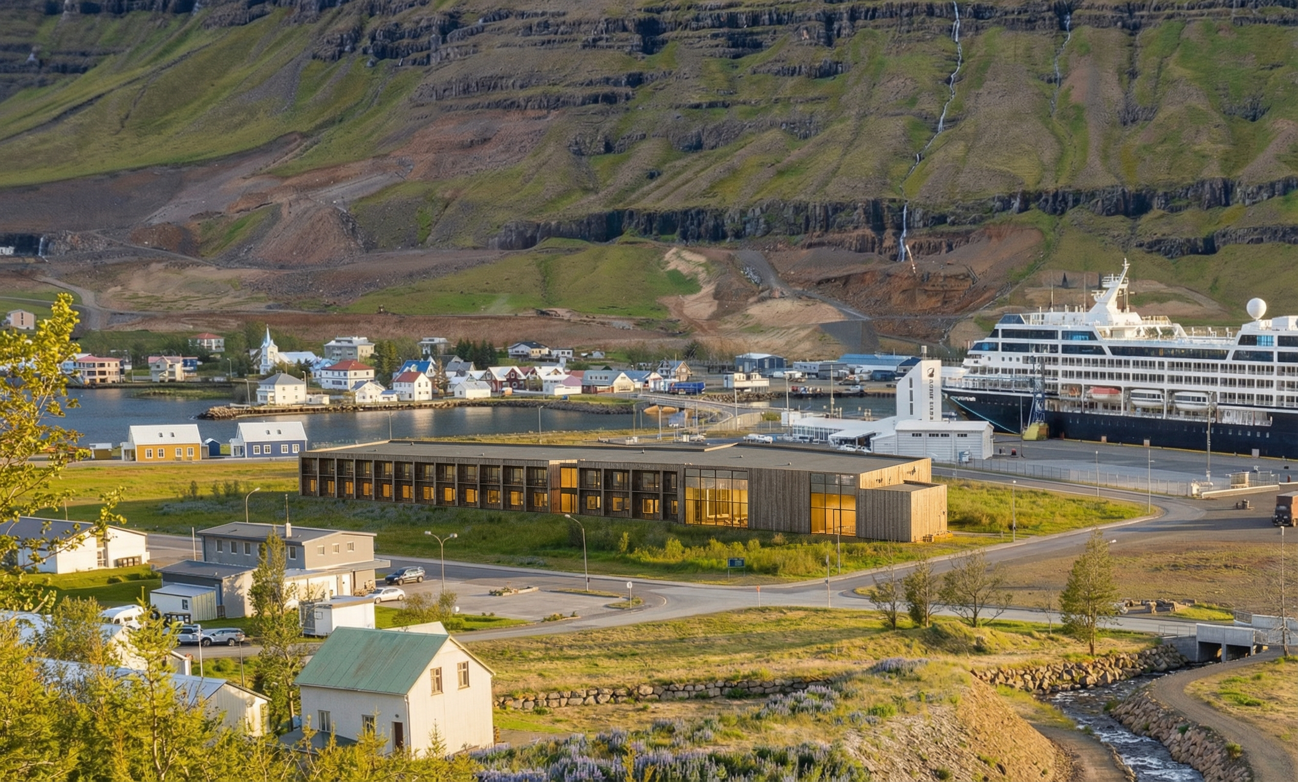 add lounge with small coffee station left of windows and parents sitting in furniture drinking coffee looking through opening in wall to indoor playground add 3 kids and more lounge furniture and decorations on walls walls in lounge to be gray less decorations on walls pictures on walls to be of kids modern furniture floor is carpet tile pictures on outside wall alligned with top of window only 3 pictures on outside wall