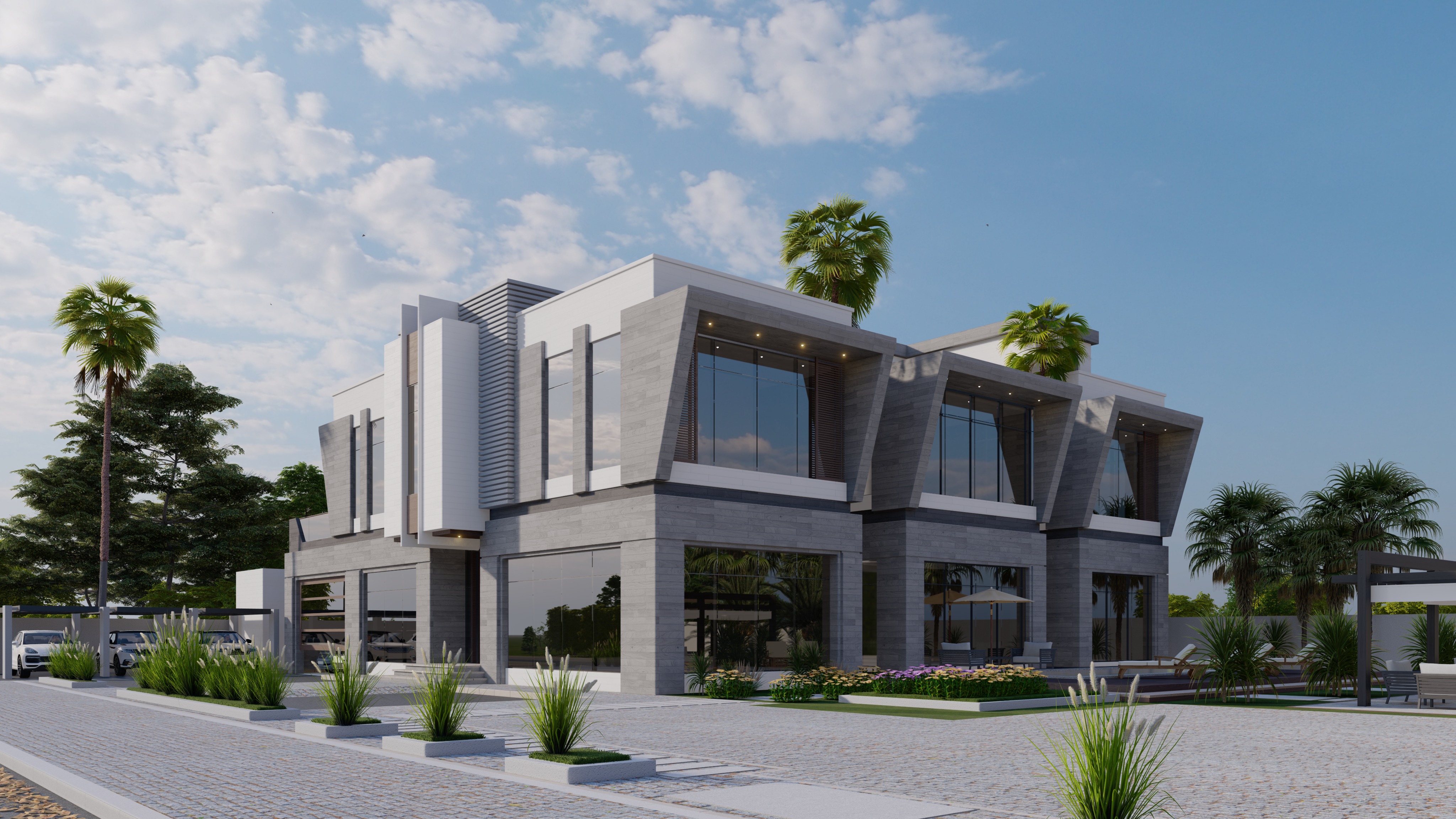 add real effect to make it look like real photo real color real glass reflections real trees as aday view photo