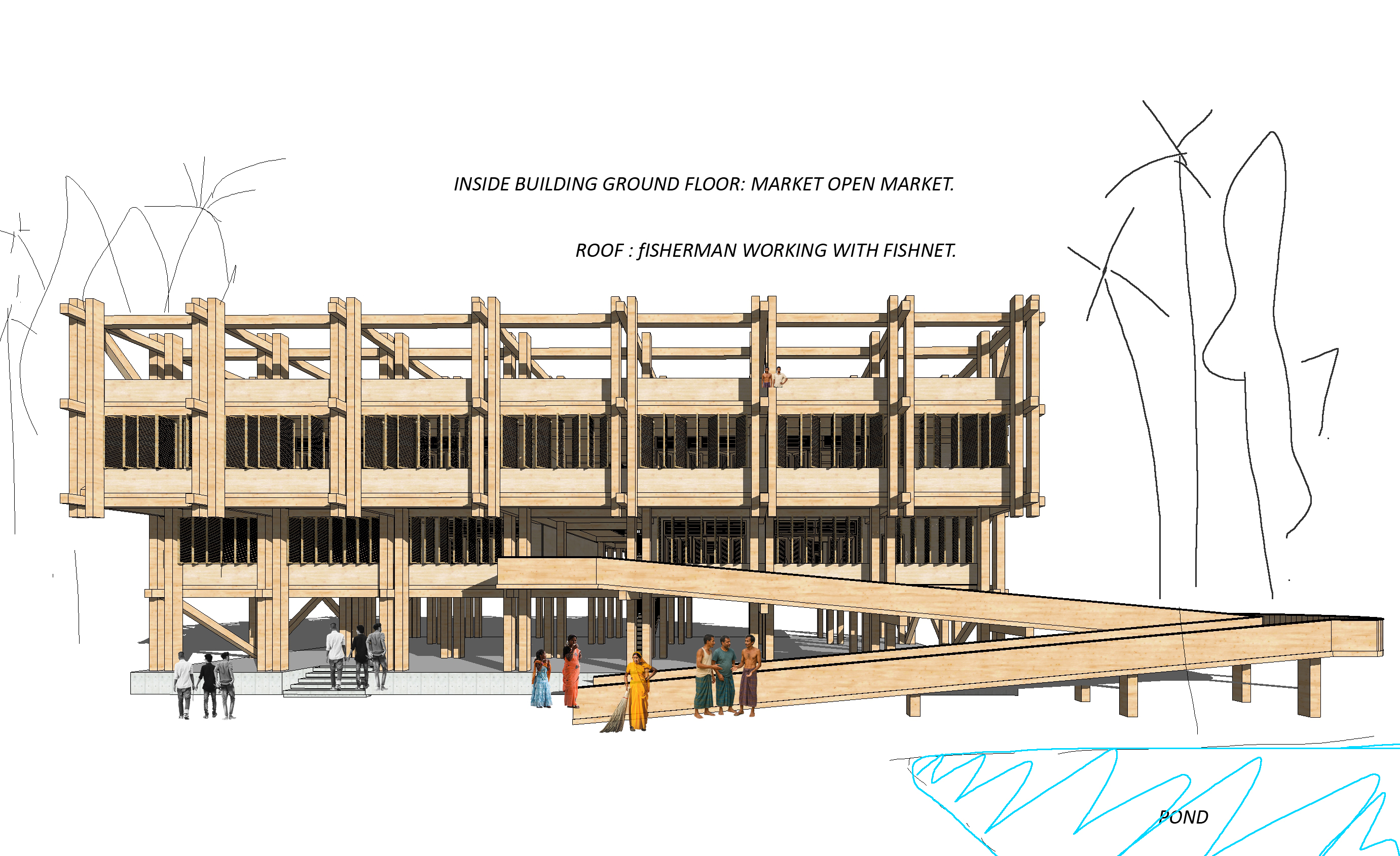 keeping exactly same 3d render this full view it s a cyclone center of bangladesh which will be used by community during normal time